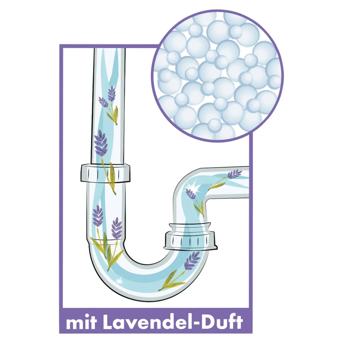 Während das Mittel im Rohrinneren wirkt, entfaltet sich ein angenehmer Lavendelduft, der störende Gerüche verdrängt und für ein sauberes Raumgefühl sorgt. Der perfekte Mix aus Reinigung, Duft und unkomplizierter Anwendung – für einen Haushalt, der funktioniert und dabei gut riecht. Für 12–20 Anwendungen.