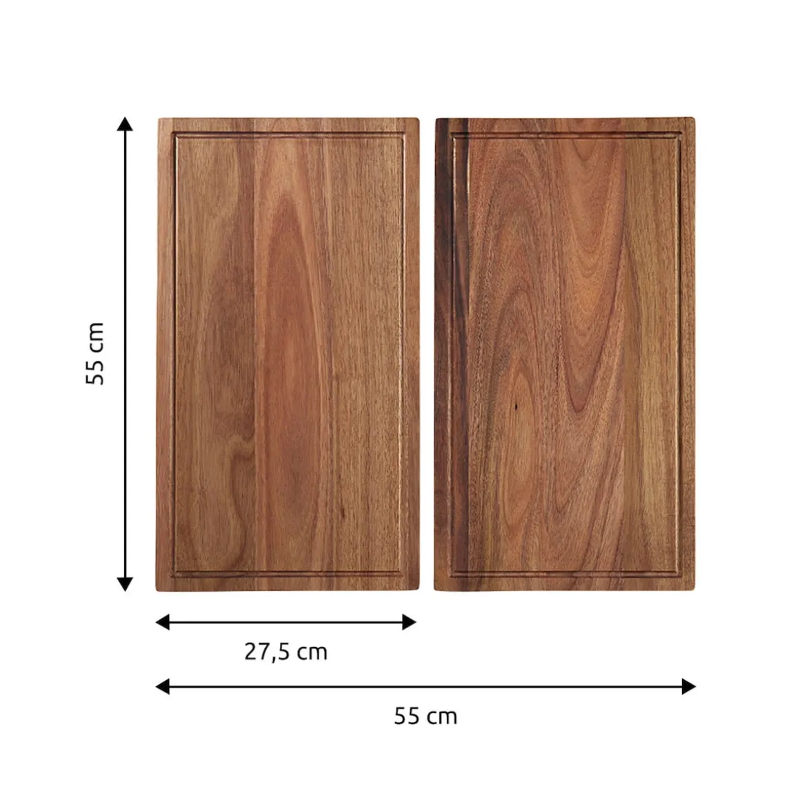 Diese Akazien-Abdeckplatte vereint Funktionalität mit stilvollem Design. Sie ist nicht nur robust und langlebig, sondern bietet auch rutschfeste Füße für stabilen Halt sowie eine praktische Saftrinne, die das Saftablaufen beim Schneiden von Obst und Gemüse erleichtert. Nutzen Sie die Platte als elegantes Schneidebrett oder stilvolle Servierunterlage. Erhältlich als eine große Platte oder als Set aus zwei kleinen Platten – ganz nach Ihrem Bedarf und Geschmack. Ideal für jede Küche und jede Gelegenheit!