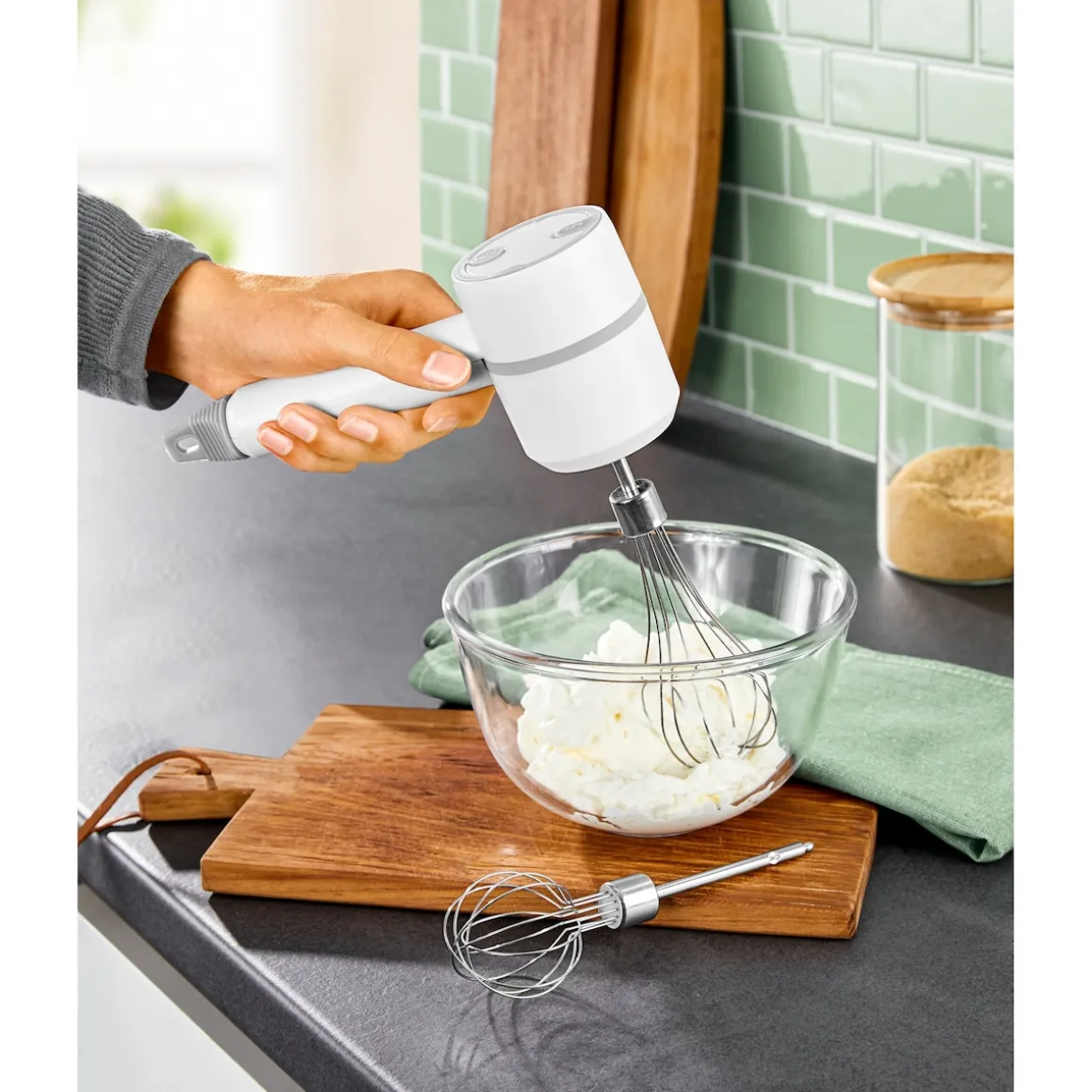 Vergessen Sie nervige, zu kurze Kabel: Mit diesem kabellosen Handrührgerät geht Ihnen das Rühren, Schlagen und Verquirlen ganz einfach von der Hand. Mit 2 verschiedenen Rührbesen und 2 Geschwindigkeitsstufen. Inkl. USB-Ladekabel.