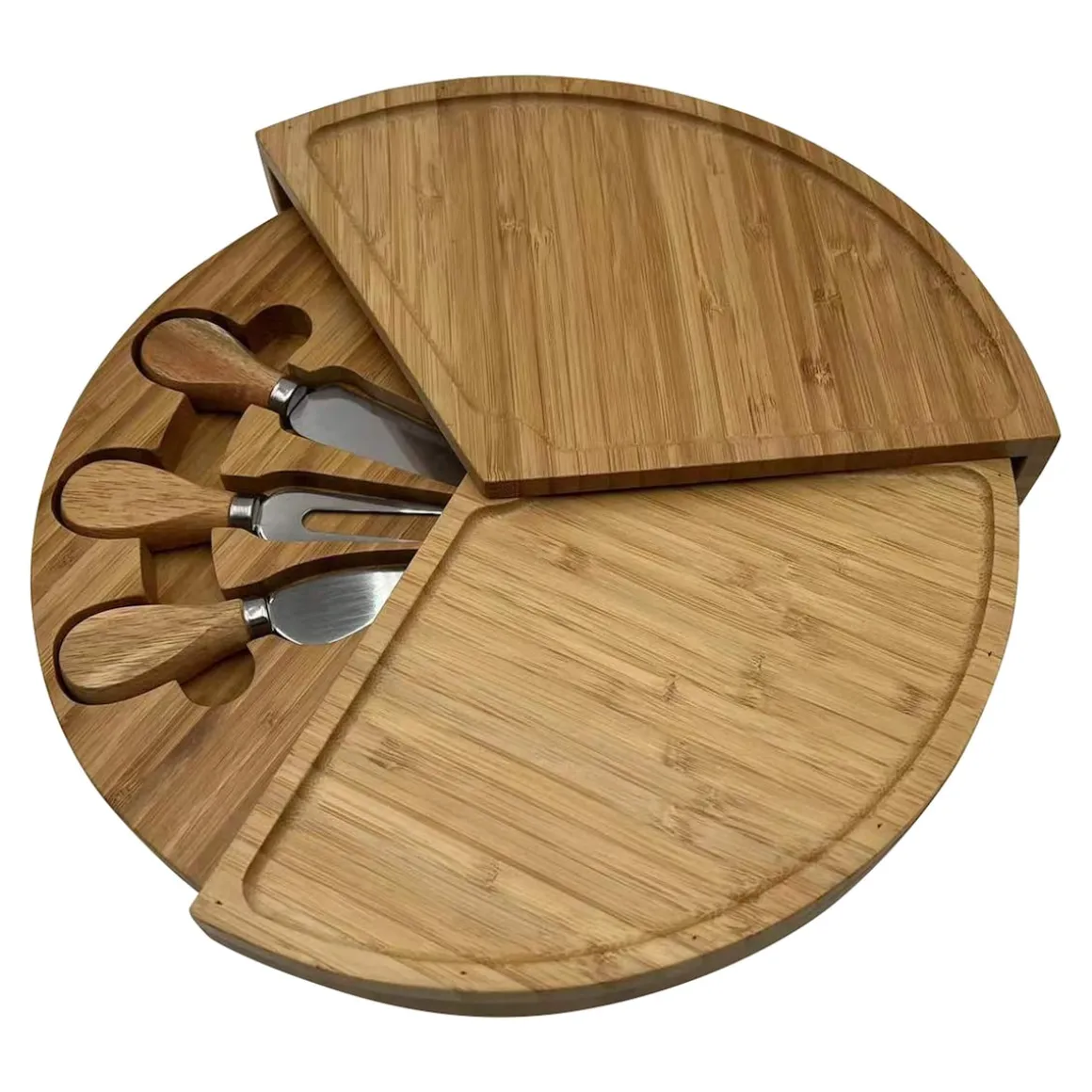 Die schönste Art zu servieren: Auf diesem Snack-Teller aus nachhaltigem Bambus richten Sie Wurst, Käse, Trauben & Co. stilvoll an – Serviergabel, Käsemesser und Parmesanbrecher inklusive! Die 3 Ebenen lassen sich platzsparend ineinander schieben. Ideal für Buffets, zur Brotzeit, auf Feiern – oder jeden Tag beim Abendbrot!