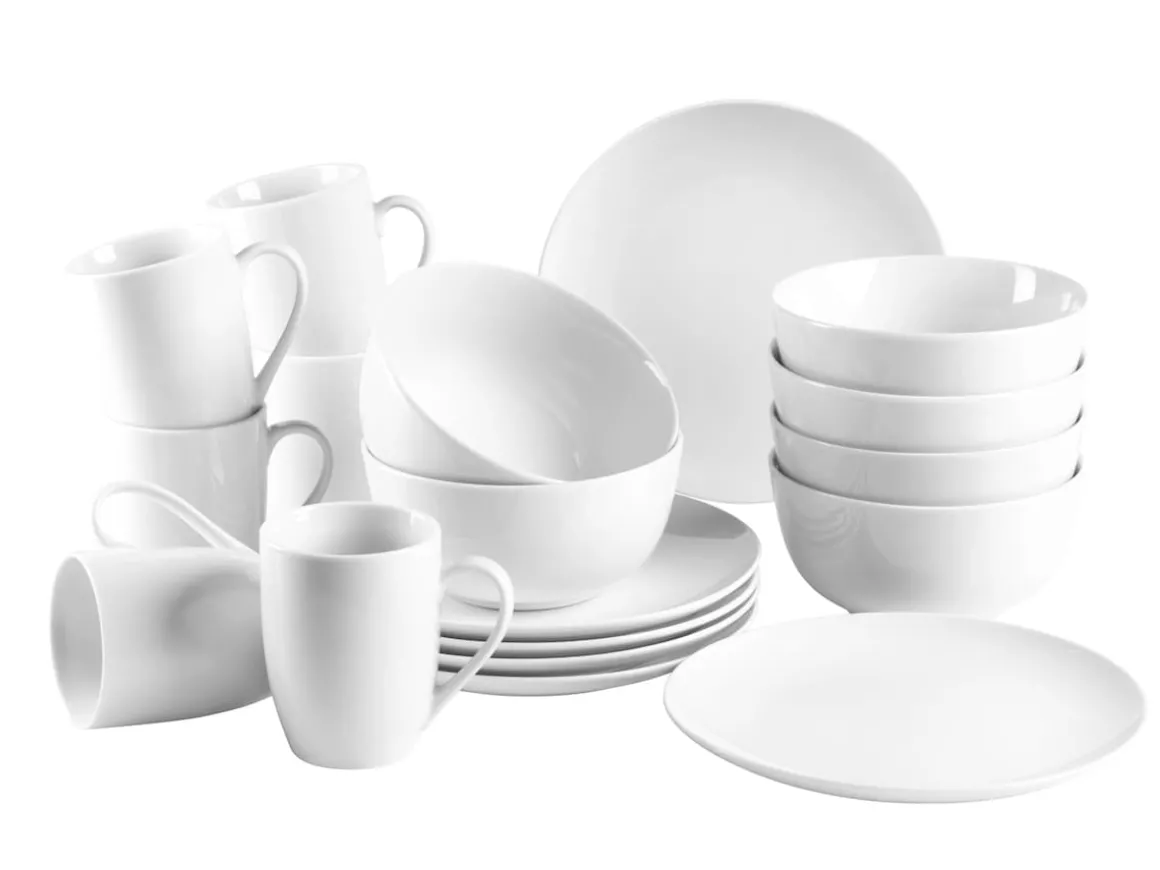 Es braucht nur wenige Handgriffe um einen Tisch so richtig zur Geltung zu bringen. Ein paar Farbkleckse kombiniert mit weißem Porzellan – et voilà: es ist angerichtet! Die Serie BARCA mit ihrer angesagten schlichten Coupe-Form lässt Platz für Ihre Dekoration und stellt Ihre kulinarischen Kreationen in den Vordergrund. Ob im Alltag oder zu besonderen Anlässen: BARCA ist Ihr zeitlos-elegantes Porzellangeschirr, das Sie über viele Jahre begleiten wird. Dieses 18-teilige Geschirr-Set für 6 Personen in Weiß besteht aus: 6 x Frühstücksteller / Dessertteller mit Ø 20,5 cm 6 x Müslischale mit Ø 14,5 cm und 750 ml Füllvolumen 6 x Kaffeebecher / Kaffeetasse groß mit Ø 7,5 cm und 290 ml Füllvolumen Das Frühstücks-Service ist dauerhaft spülmaschinen- und mikrowellengeeignet, und dadurch äußerst pflegeleicht. Dieses Service wird in einer speziell für dieses Geschirr-Set entwickelten, vielfach getesteten Transportverpackung aus umweltschonenden Materialien versendet.