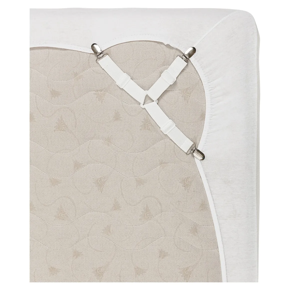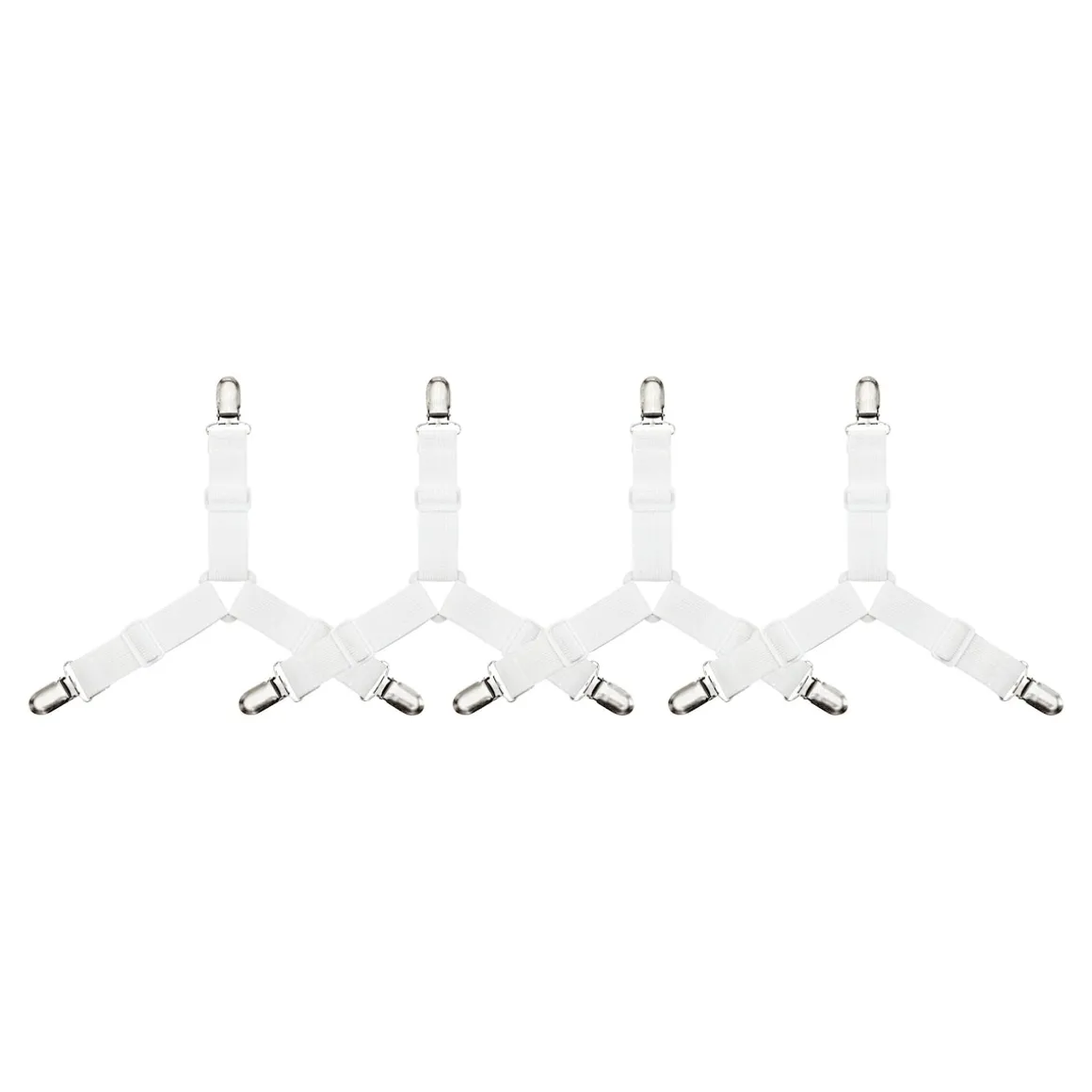 Ständig verrutscht Ihr Bettlaken? Mit unseren praktischen Betttuchspannern bleibt Ihr Laken dauerhaft gespannt. Einfach die Klipps am Laken befestigen und die Verschlüsse zudrücken. Dank der variablen Einstellbarkeit von (LxB) 17-24×8,5-12 cm und den drei Laschen sind sie überall leicht anzubringen. Die hochelastischen Materialien sorgen für sicheren Halt und faltenfreien Schlafkomfort.