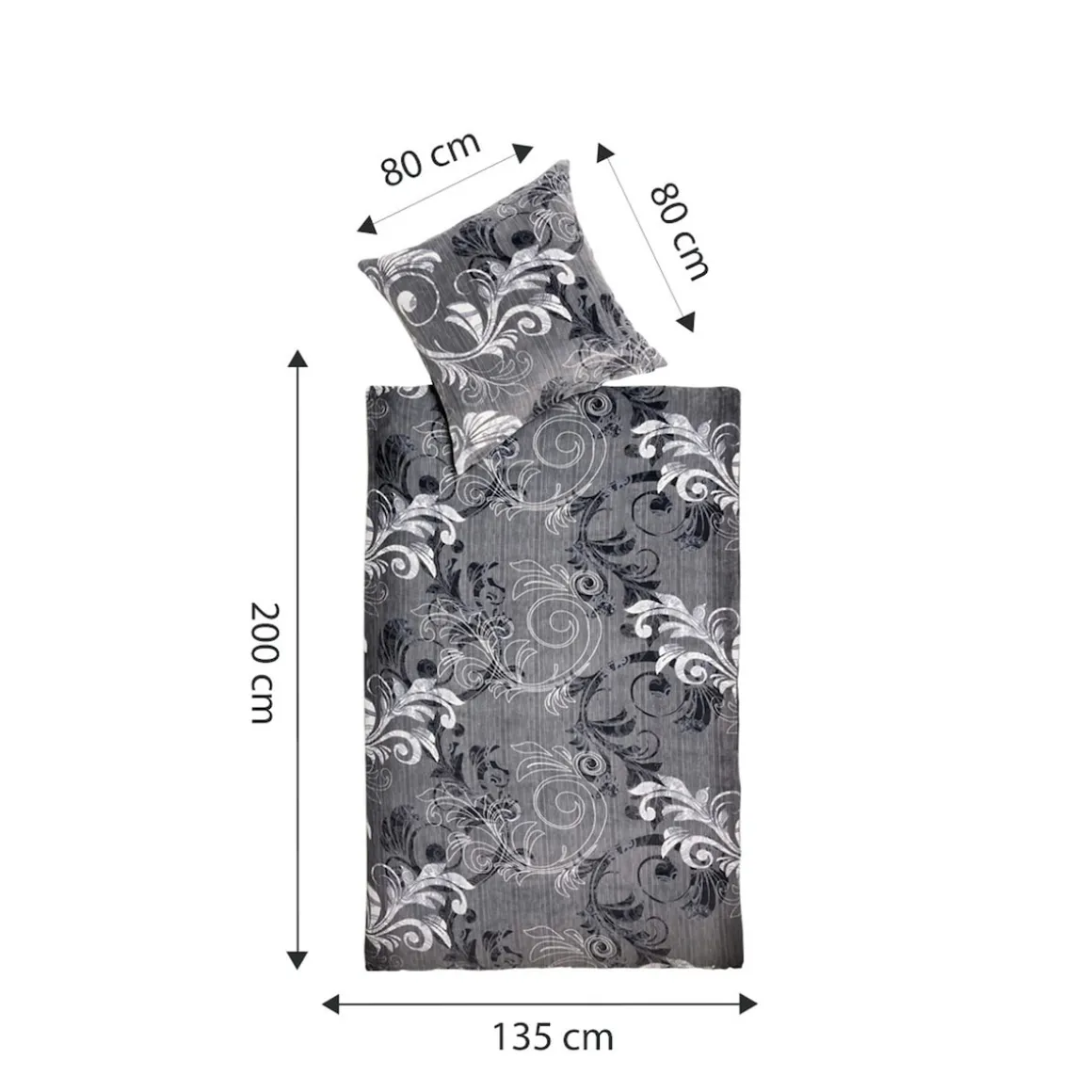 Abmessungen: Bettbezug (LxB): 200×135 cm, Kissenbezug (LxB): 80×80 cm