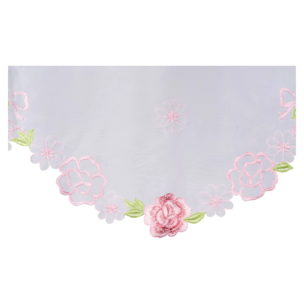 Sie lieben es romantisch? Dann wird diese zauberhaft luftige Bistrogardine garantiert Ihr Herz erobern. Aufwendig bestickt, ranken sich Rosen und Blätter an den Abschlussbögen entlang und verzaubern Ihr Zuhause auf charmante Art und Weise.