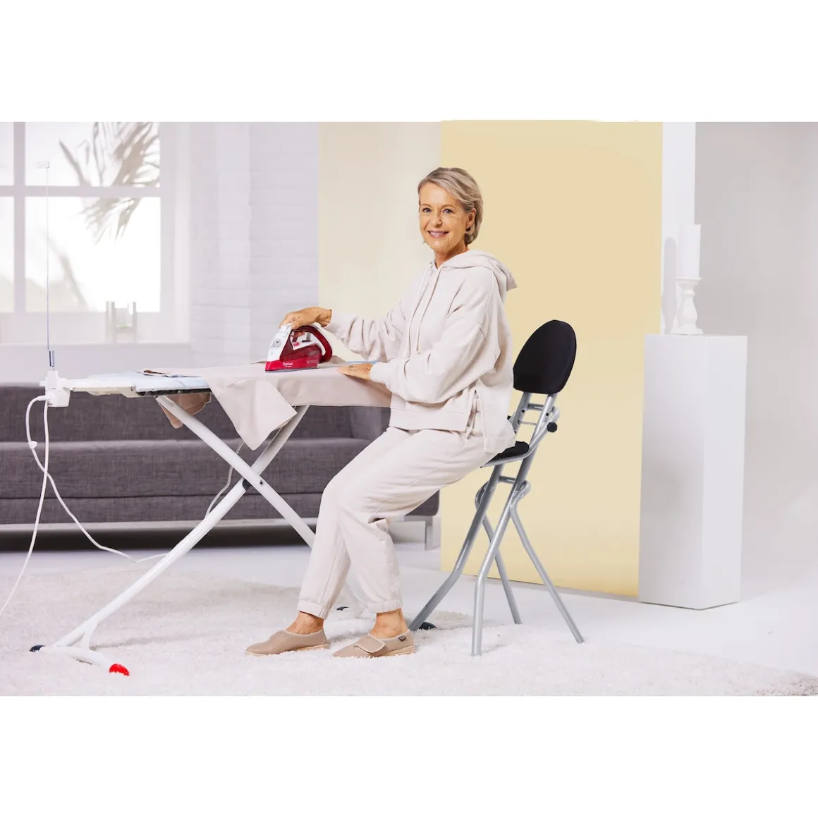 Hier kommt Ihre ganz persönliche Erleichterung für langes Arbeiten im Stehen: Dieser praktische Hocker ist schnell zur Hand und entlastet Ihren Rücken beim Bügeln, Kochen & Co. Mit gepolsterter Lehne und rutschhemmenden Füßen für einen sicheren Stand. 3-fach höhenverstellbar – für jede Körpergröße passend. Bei Nichtgebrauch platzsparend zusammenklappbar.