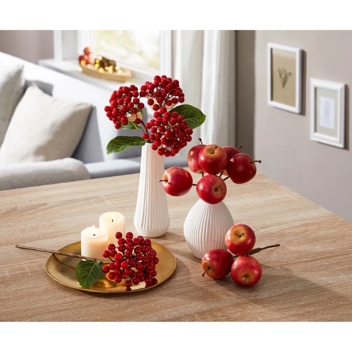 Die reifen Früchte des Herbstes regen zum kreativen Dekorieren und Basteln an. Die künstlichen Äpfel mit Stiel aus Draht lassen sich wunderbar in Steckschaum oder Gestecke einarbeiten.