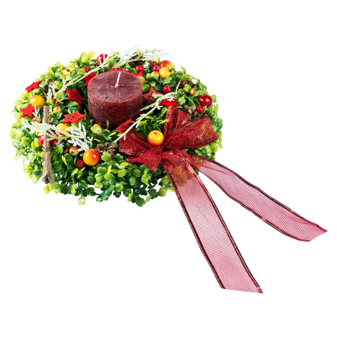Verleihen Sie Ihrem Zuhause mit diesem Adventskranz eine festliche Note. An der Haustür aufgehängt, sorgt er für vorweihnachtliche Stimmung und heißt Ihre Gäste herzlich willkommen. Aber auch als Tischkranz setzt er einen stimmungsvollen Akzent und wird zum Mittelpunkt auf Ihrer weihnachtlich gedeckten Kaffeetafel.