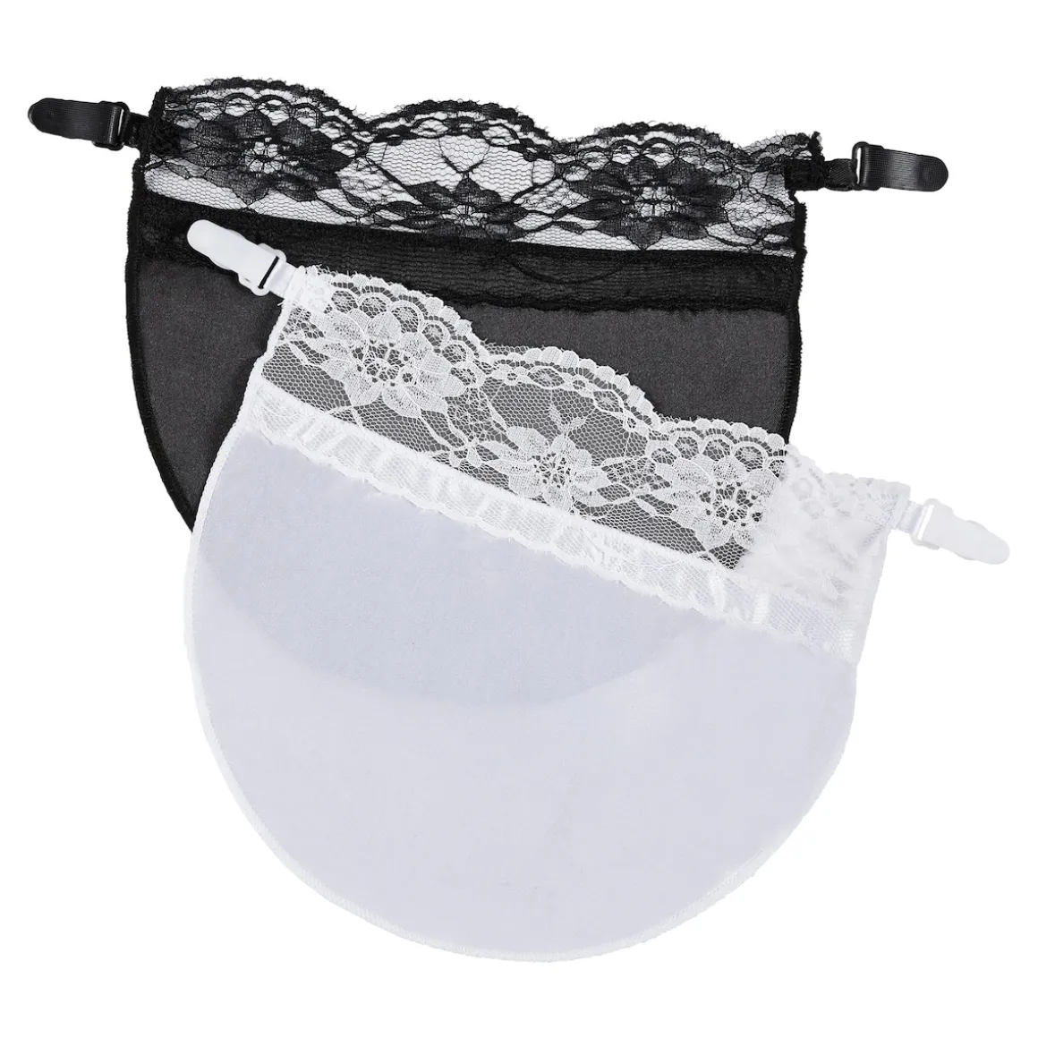 Mit dem Dekolleté-Clou in Schwarz und Weiß können Sie den Look Ihres Oberteils in wenigen Sekunden auf geniale Weise verändern. Der jeweilige Einsatz wird einfach mit den beiden Klipps am BH befestigt und vermittelt den täuschend echten Eindruck eines darunter getragenen Spitzentops.