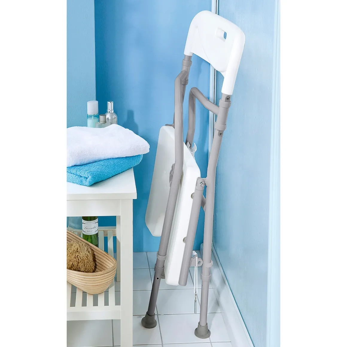 Rücken und Armlehnen sorgen im Nassbereich für mehr Sicherheit – die Aussparung in der Sitzfläche erleichtert die Intimhygiene. Besonders mobil und ideal auf Reisen! Lieferung fertig montiert.