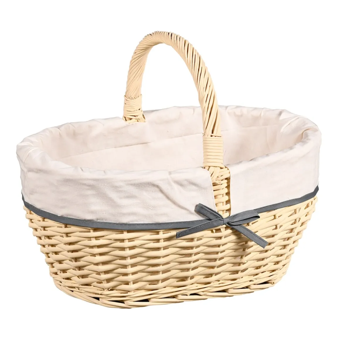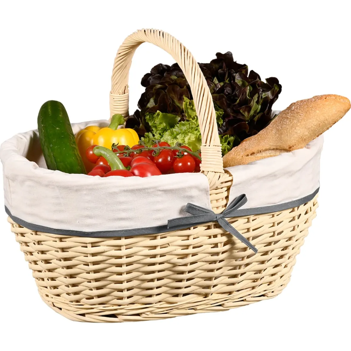 Der Einkaufskorb aus Weidegeflecht mit eingebundenem Textilfutter hinterlässt nicht nur einen modernen Eindruck, sondern ist auch ein Meister darin, Ihre Einkäufe zu transportieren. Die Kombination aus stabiler Verarbeitung und ansprechendem Design macht ihn zu einem praktischen und stilvollen Begleiter im Alltag.