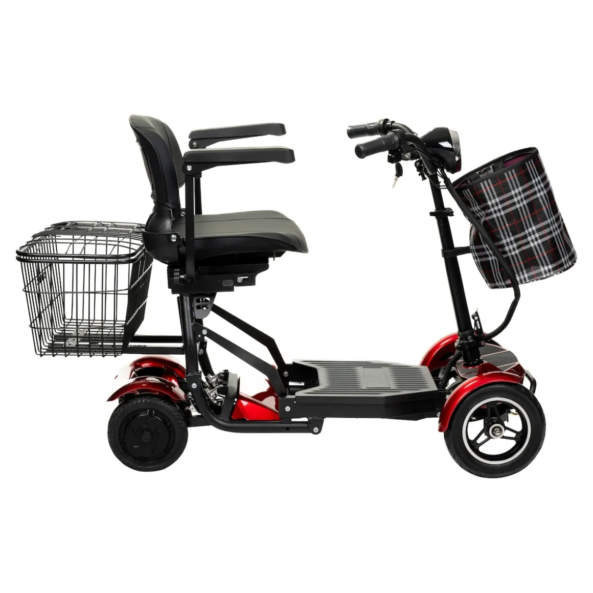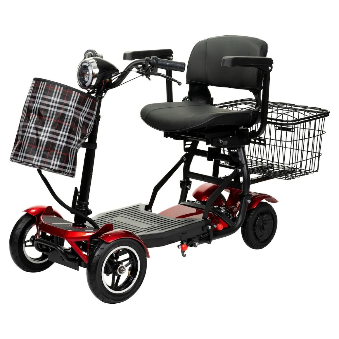 Praktische Extras wie ein geräumiger Korb und eine zusätzliche Tasche bieten ausreichend Stauraum für persönliche Gegenstände oder Einkäufe. Die 10-Zoll luftgefüllten Vorderräder und die 8-Zoll gegossenen Hinterräder sorgen für eine stabile und angenehme Fahrt auf unterschiedlichen Untergründen.