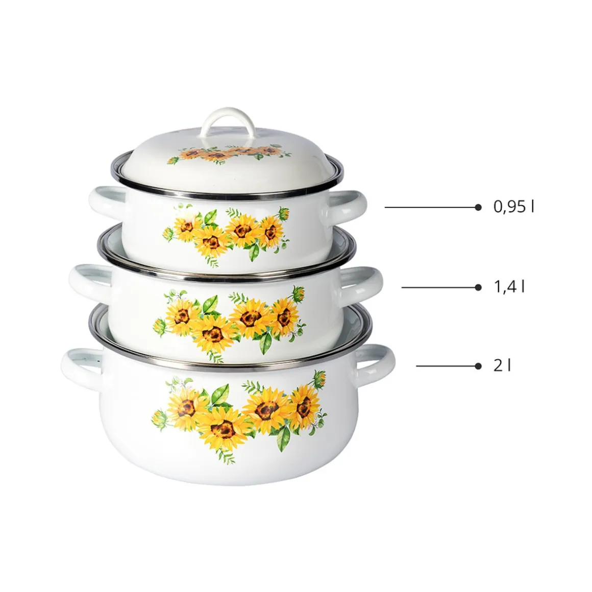Fassungsvermögen Set: 950 ml, 1.400 ml, 2.000 ml