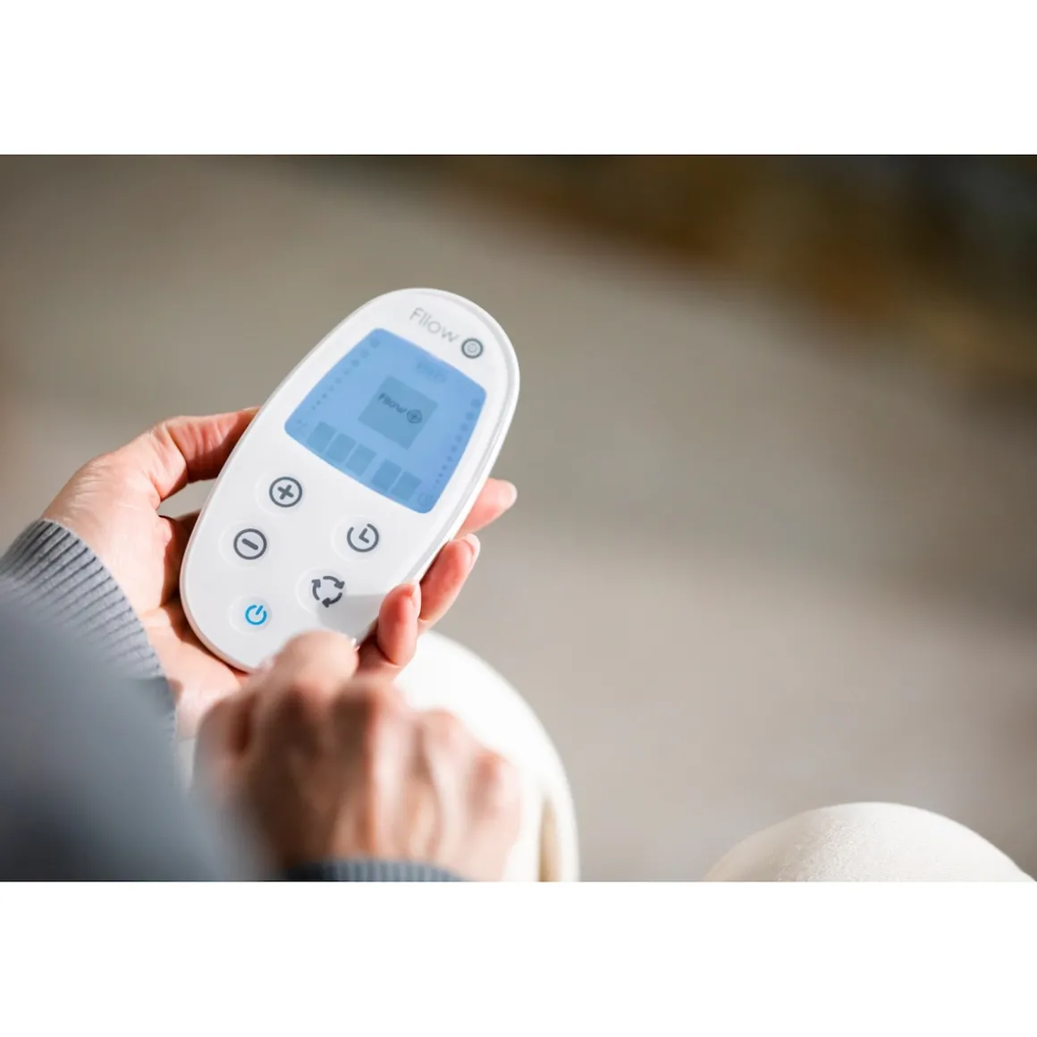 Das EMS-Fußmassagegerät „Fllow“ bietet Ihnen eine komfortable Möglichkeit, Ihre Beine und Füße zu aktivieren und zu entspannen – zu Hause oder unterwegs. Die moderne elektronische Muskelstimulation (EMS) sorgt für sanfte Impulse, die die Muskulatur in Waden und Beinen rhythmisch ansprechen. Ideal nach langem Sitzen, Stehen oder einem anstrengenden Tag. Zusätzliche Arthro-Pads erweitern die Anwendung auf Knie- und Oberschenkel für ein umfassendes Erlebnis. Dank der Relax-&-Recline-Funktion können Sie Fllow bequem im Sitzen oder Liegen nutzen – ob auf dem Sofa, im Bett oder im Sessel. Die Steuerung erfolgt intuitiv über eine kabellose Fernbedienung mit übersichtlichem Display. Drei Programme und 150 individuell einstellbare Intensitätsstufen ermöglichen eine flexible Anpassung. Der leistungsstarke Akku bietet bis zu 36 Stunden kabellosen Betrieb. Durch das kompakte Design und den praktischen Trageriemen ist Fllow leicht zu transportieren und platzsparend zu verstauen. Ob zu Hause, im Büro oder auf Reisen – Fllow sorgt für ein angenehmes und vielseitiges Anwendungserlebnis.