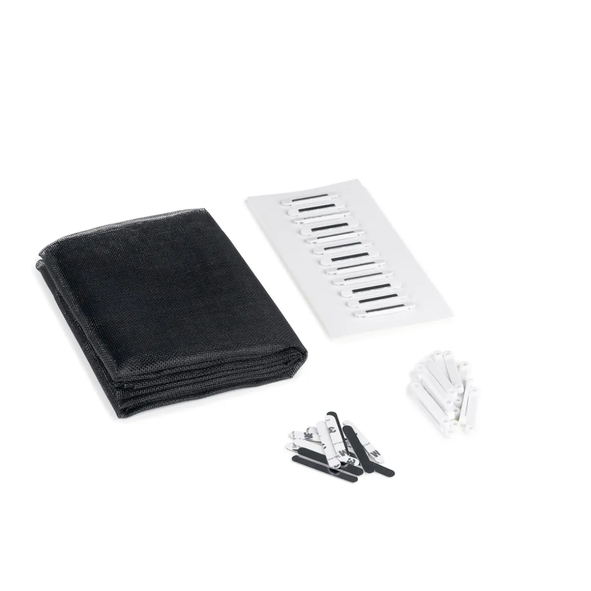 Trotz des zuverlässigen Schutzes vor Mücken und anderen Insekten ist das Moskitonetz angenehm luft- und lichtdurchlässig. Nach der Saison lässt es sich mit wenigen Handgriffen abnehmen, zusammenfalten und platzsparend bis zum nächsten Sommer im Schrank verstauen. Bei einem möglichen Auszug können außerdem die aufgeklebten Metallplatten rückstandsfrei entfernt werden.
