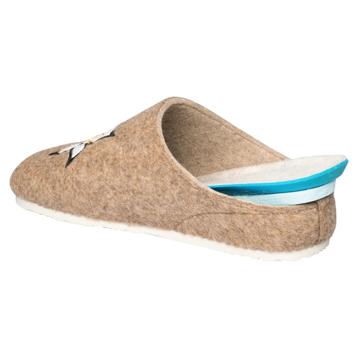 In dieser bequemen und leichten Filz-Pantolette mit auffälliger Edelweiß-Stickerei werden sich Ihre Füße rundum wohlfühlen. Dank der rutschhemmenden Gummi-Laufsohle ist auch ein Gang nach draußen problemlos möglich. Mit herausnehmbarer Einlegesohle.