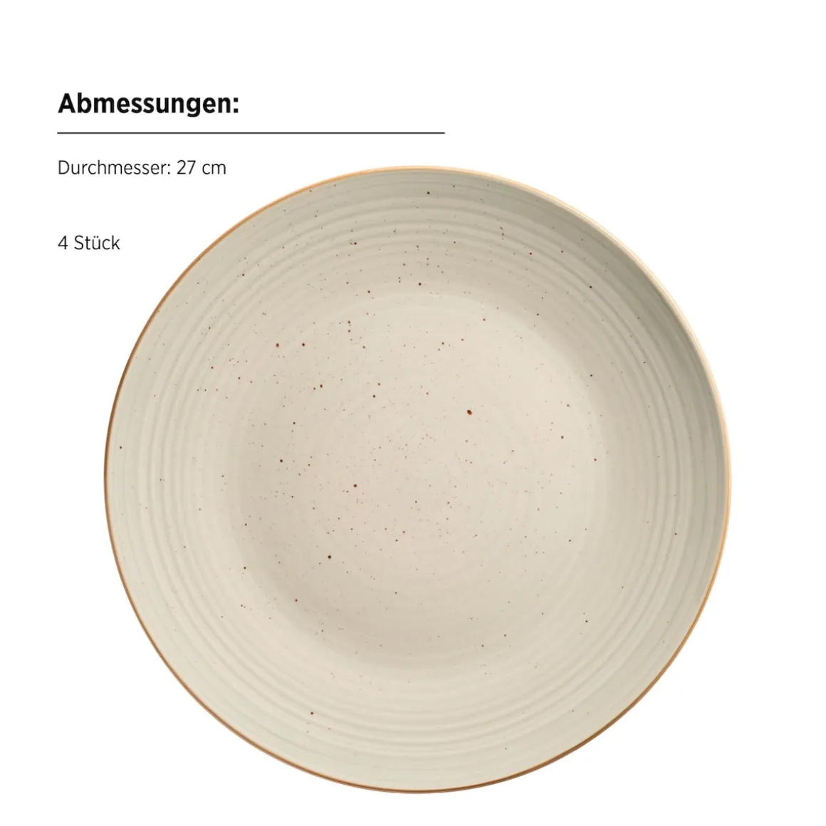 Die Serie „Valmera“ steht für rustikalen Vintage-Look mit modernen Farben und Formen. Das Keramikgeschirr, der Marke Mäser, zaubert im Nu ein fröhliches Ambiente auf Ihren Tisch. Valmera kombiniert kreisförmige, verspielte Linien mit einem farblich abgesetzten Rand und dezenten Punkten für einen charmanten Handmade-Touch. Das robuste Steinzeug Material ist pflegeleicht und geeignet für Spülmaschine und Mikrowelle. Erhältlich in den Farbstellungen Hellblau, Hellgrün und Hellgrau.