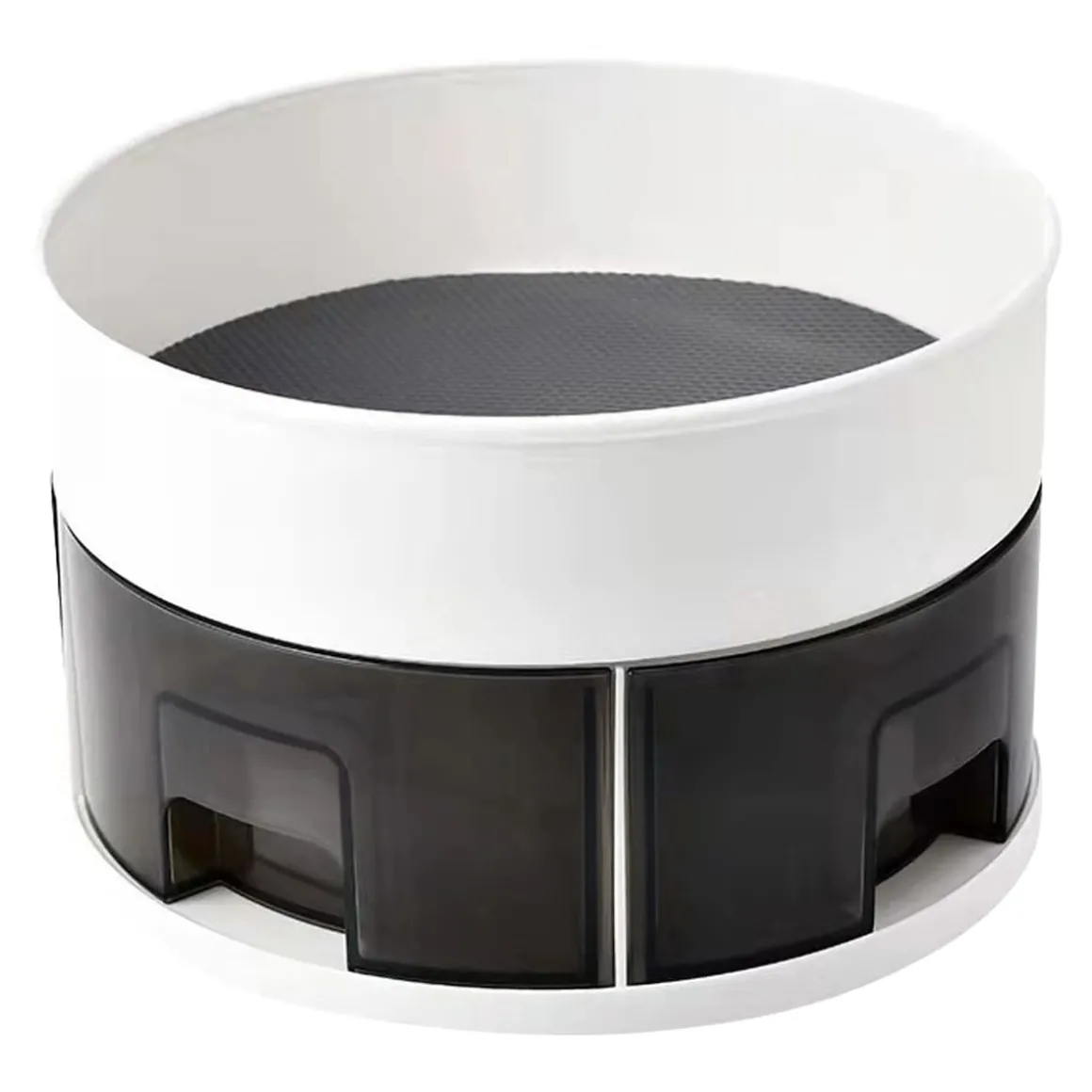 Tolle Optik UND optimale Funktion: die perfekte Kombination – und Beschreibung für diesen übersichtlichen Gewürz-Organisator! Er ist vollständig und in beide Richtungen drehbar, somit ist das gewünschte Gewürz ganz schnell zur Hand. In seinen 4 transparenten Schubfächern mit viel Fassungsvermögen kann Loses eingefüllt werden – und obenauf befindet sich eine große Ablagefläche mit erhöhtem Rand für allerlei weitere Zutaten! Spart sagenhaft viel Platz und sorgt für maximale Übersichtlichkeit. Stabil und hochwertig verarbeitet.