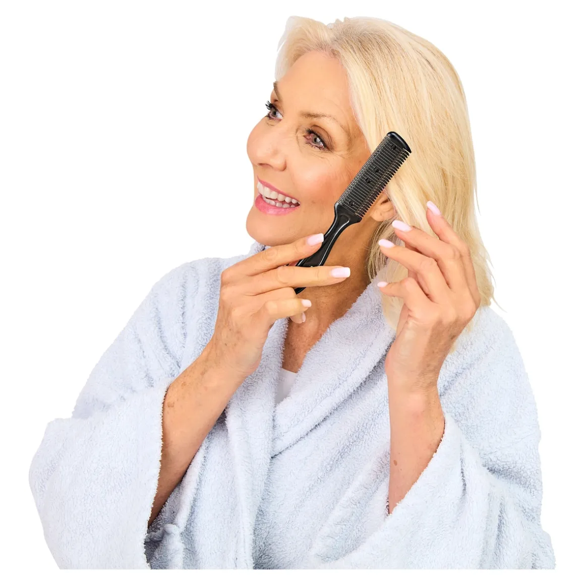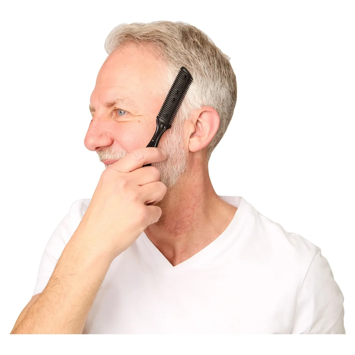 Mit diesem doppelseitigen Haarschneidekamm halten Sie Ihre Frisur selbst in Form. Die integrierte Klinge trimmt und effiliert überstehende Haare – ideal auch für Bart & Co.