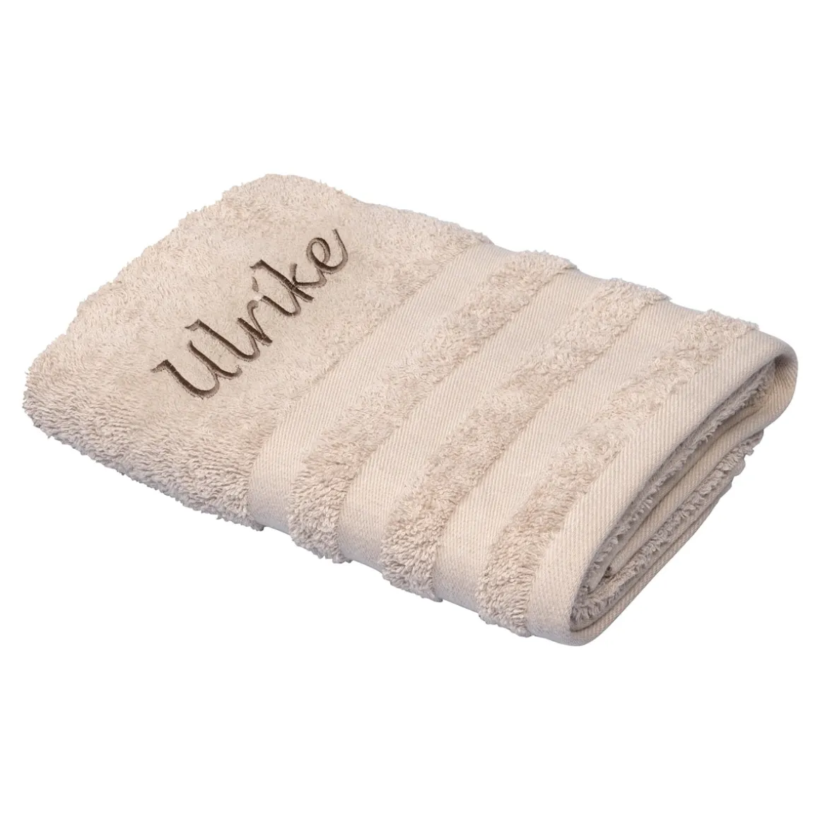 Mit unserem individualisierbaren Handtuch wird die tägliche Körperpflege zum persönlichen Vergnügen. Jedes Familienmitglied kann sein Lieblingshandtuch in seiner Wunschfarbe mit eingesticktem Namen wählen. Dank des extra saugstarken Materials wird das Abtrocknen zum Kinderspiel und sorgt für kuschelige Wohlfühlmomente nach dem Duschen, Baden oder Schwimmen. Gönnen Sie sich und Ihrer Familie das Vergnügen der eigenen Wohlfühltücher und verabschieden Sie sich von Verwechslungen im Badezimmer!