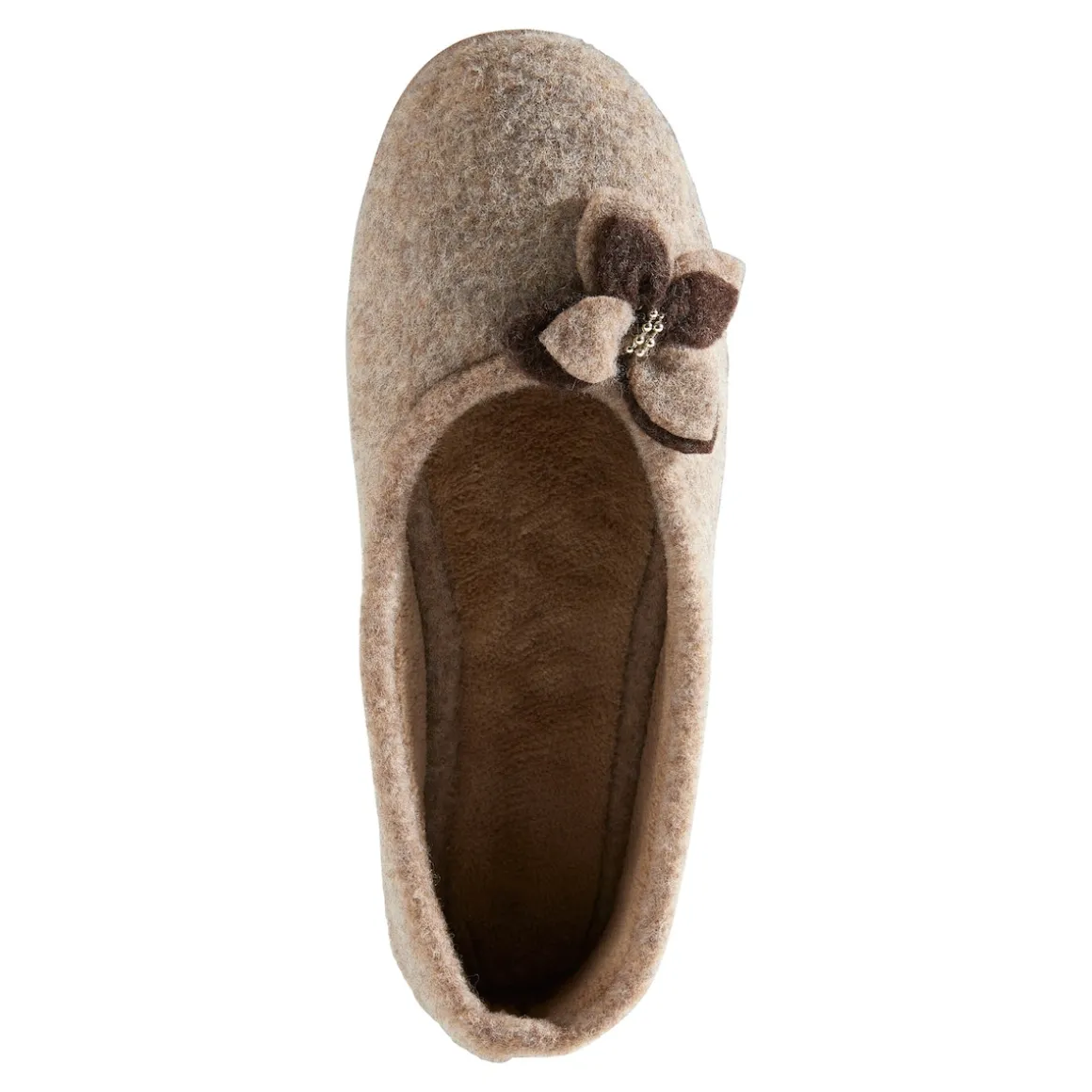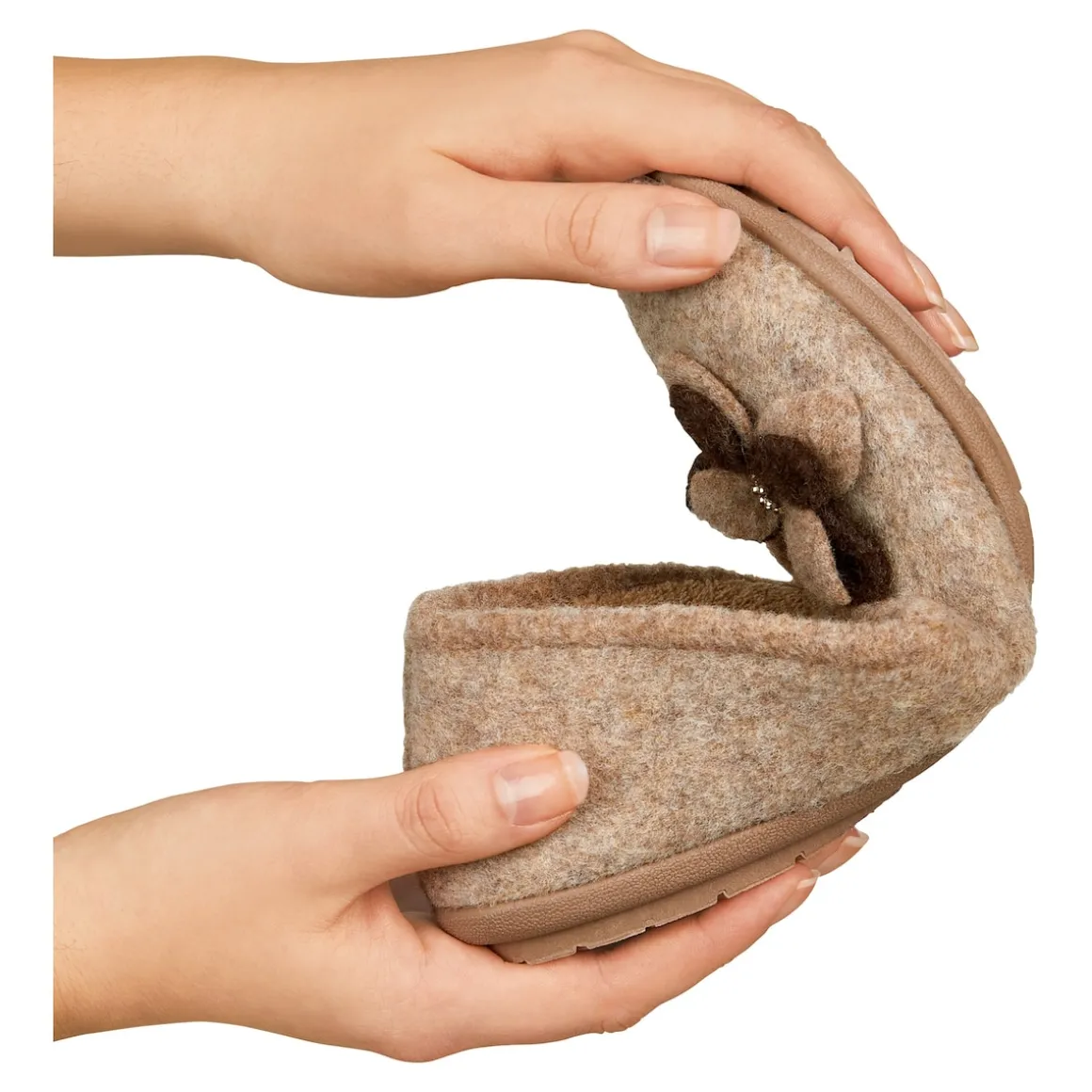 Kalte Füße waren gestern: Mit diesem überaus komfortablen Hausschuh-Ballerina halten Sie Ihre Füße mollig warm. Das kuschelige Material und die weiche Decksohle sorgen für eine extra Portion Gemütlichkeit. Hübsches Detail: Die zweifarbige Blütenapplikation macht den Hausschuh optisch zu einem attraktiven Blickfang. Dank der rutschhemmenden, flexiblen Gummi-Laufsohle ist auch ein kurzer Gang nach draußen kein Problem.
