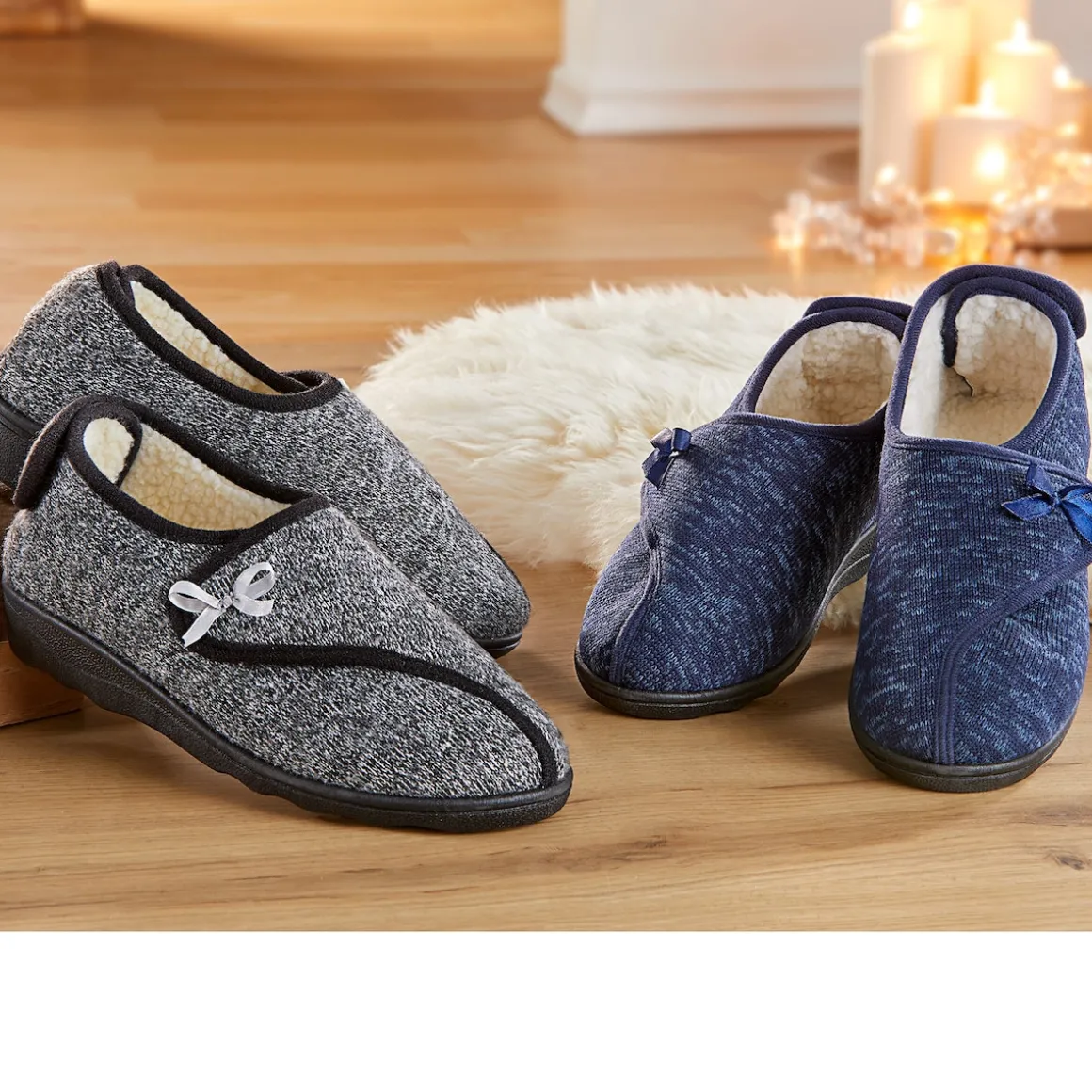 Dieser Hausschuh von WONDERWALK hat viel zu bieten: superbequem und mollig warm, zeigt er sich rundum komfortabel! Dank seiner Klettverschlüsse an der Ferse und seitlich über dem Rist lässt er sich einfach und schnell an- und ausziehen sowie optimal jedem Fuß anpassen – für einen zuverlässigen Sitz, ohne einzuengen. Ideal auch bei Hallux valgus. Mit rutschhemmender Gummi-Laufsohle für einen sicheren Tritt, auch im Freien.