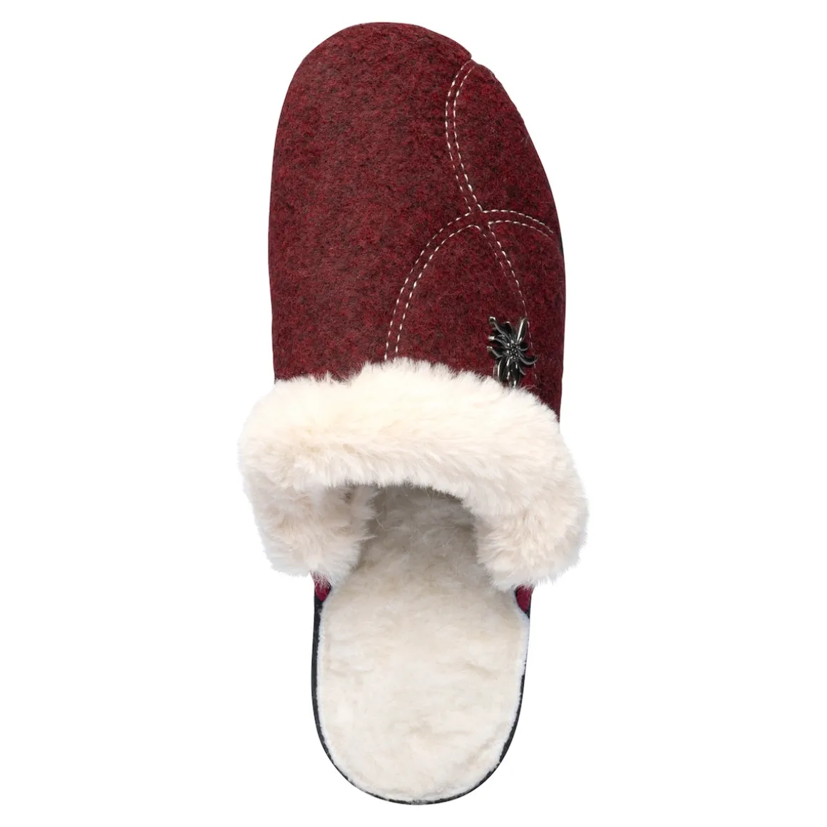 Pure Behaglichkeit für jeden Tag – ein Muss für gemütliche Stunden Zuhause. Bequemer und kuschelig, warmer Hausschuh mit Wollfutter und Kunstpelzrand, sowie einer schönen Edelweiß-Applikation. Mit rutschhemmender Laufsohle.