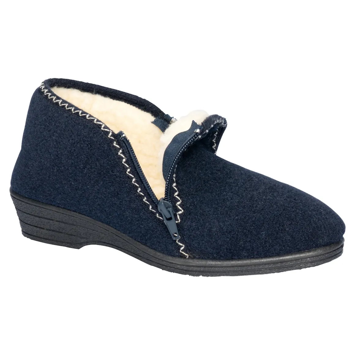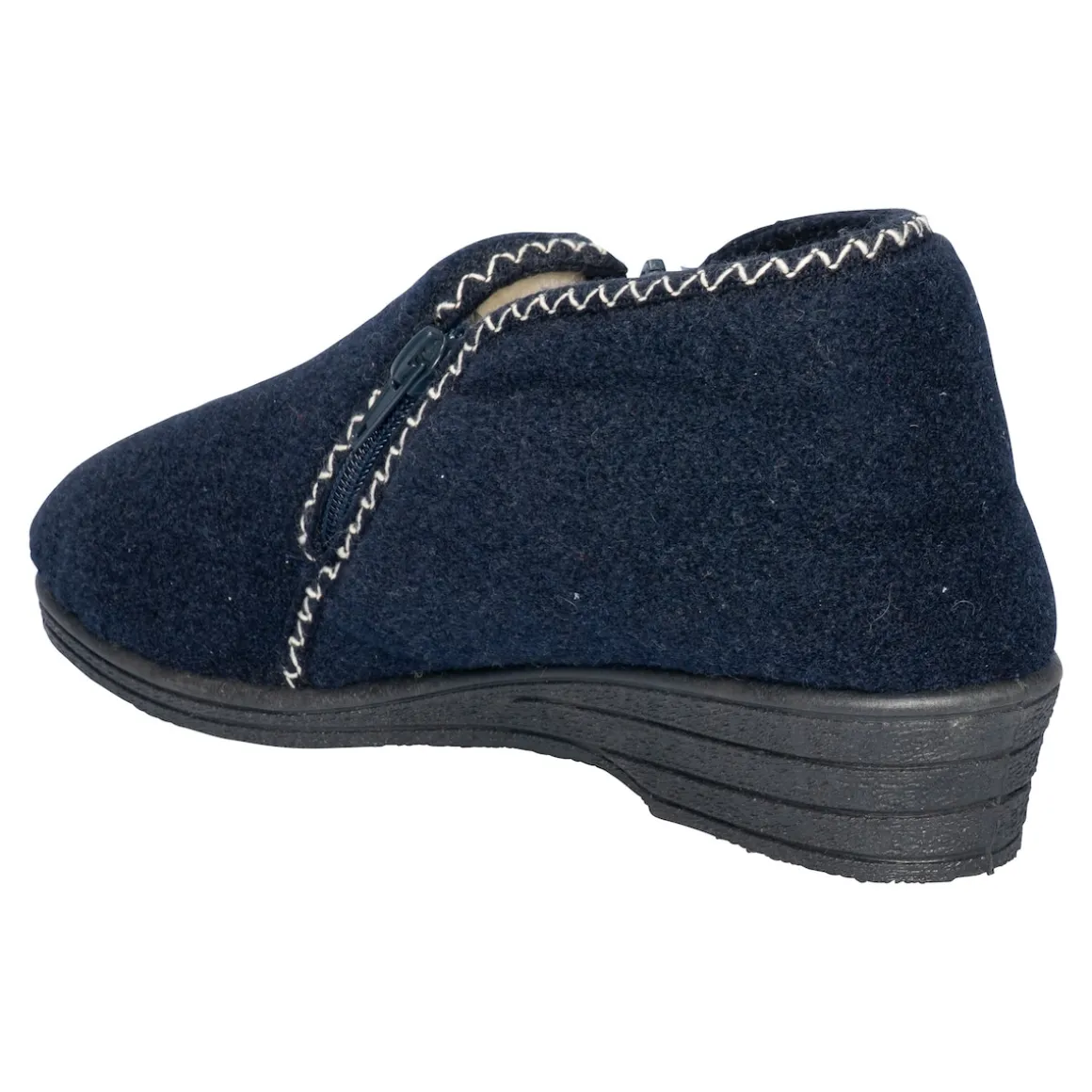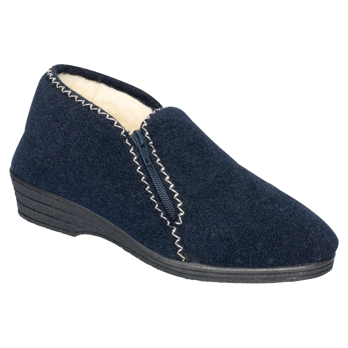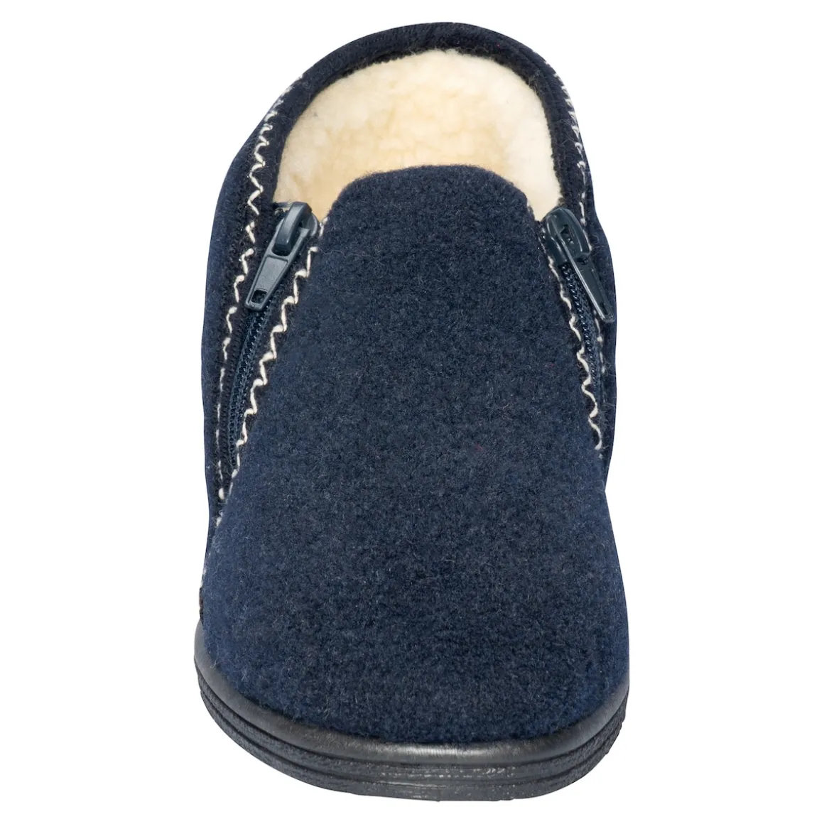 Kuscheliges Wohlgefühl für Ihre Füße an kälter werdenden Tagen: Dieser Hausschuh mit weichem Innenfutter wärmt angenehm und sorgt für ein ideales Fußklima. Durch 2 Reißverschlüsse leichtes an- und ausziehen.