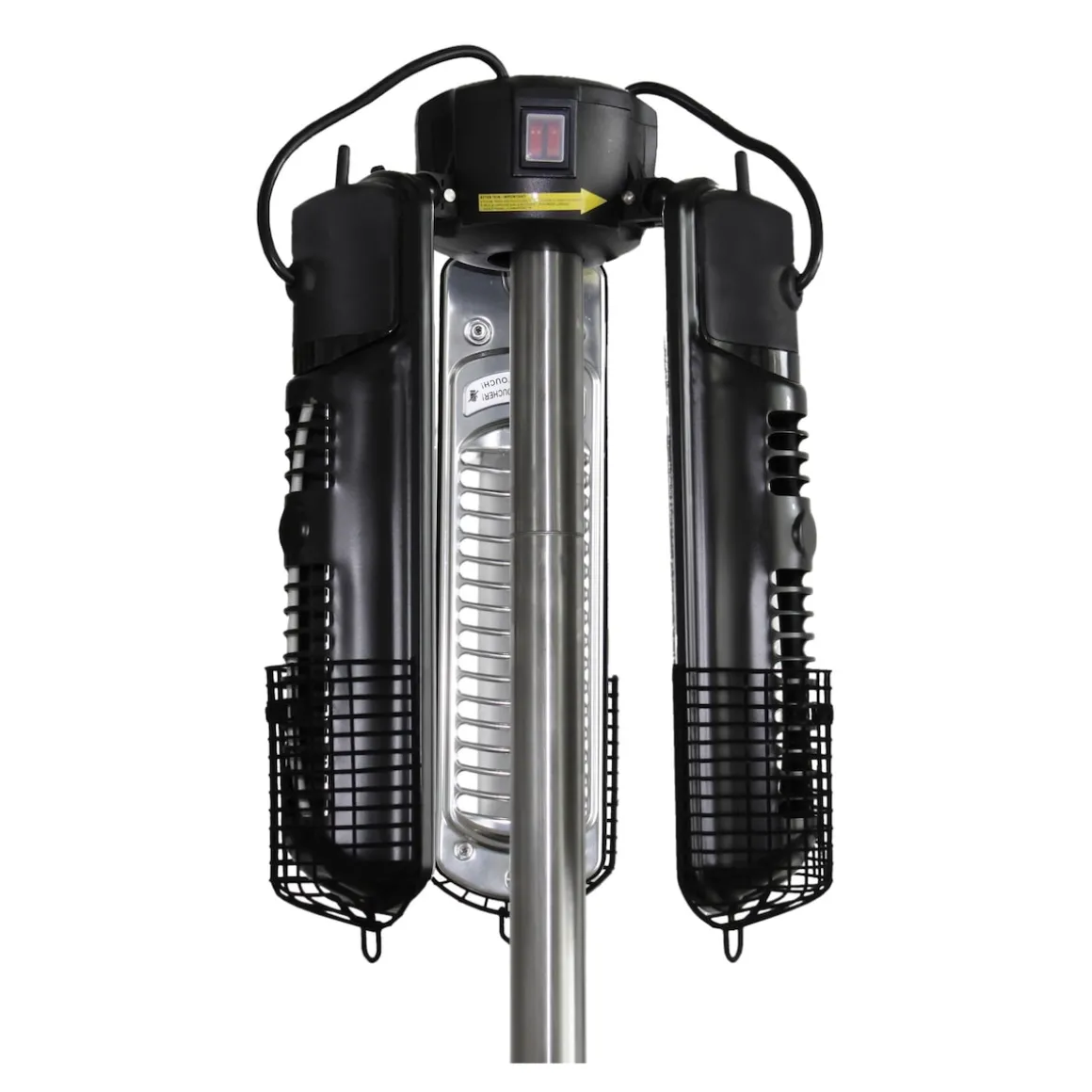 Die ideale Heizlampe mit Infrarot-Halogen Technologie eignet sich bestens für Schirmständer auf Terassen oder dem Gartensitzplatz. Das Halogen-Heizelement liefert angenehme Wärme in sekundenschnelle. Die Heizlampe lässt sich bequem ein- und ausschalten, dank dem Schutzgitter ist optimale Sicherheit geboten. Durch den Spritzwasser-Schutz kann das Gerät auch in feuchter Umgebung in Betrieb genommen werden. SIGA dient sowohl als eleganter Licht- wie auch Wärmespender.