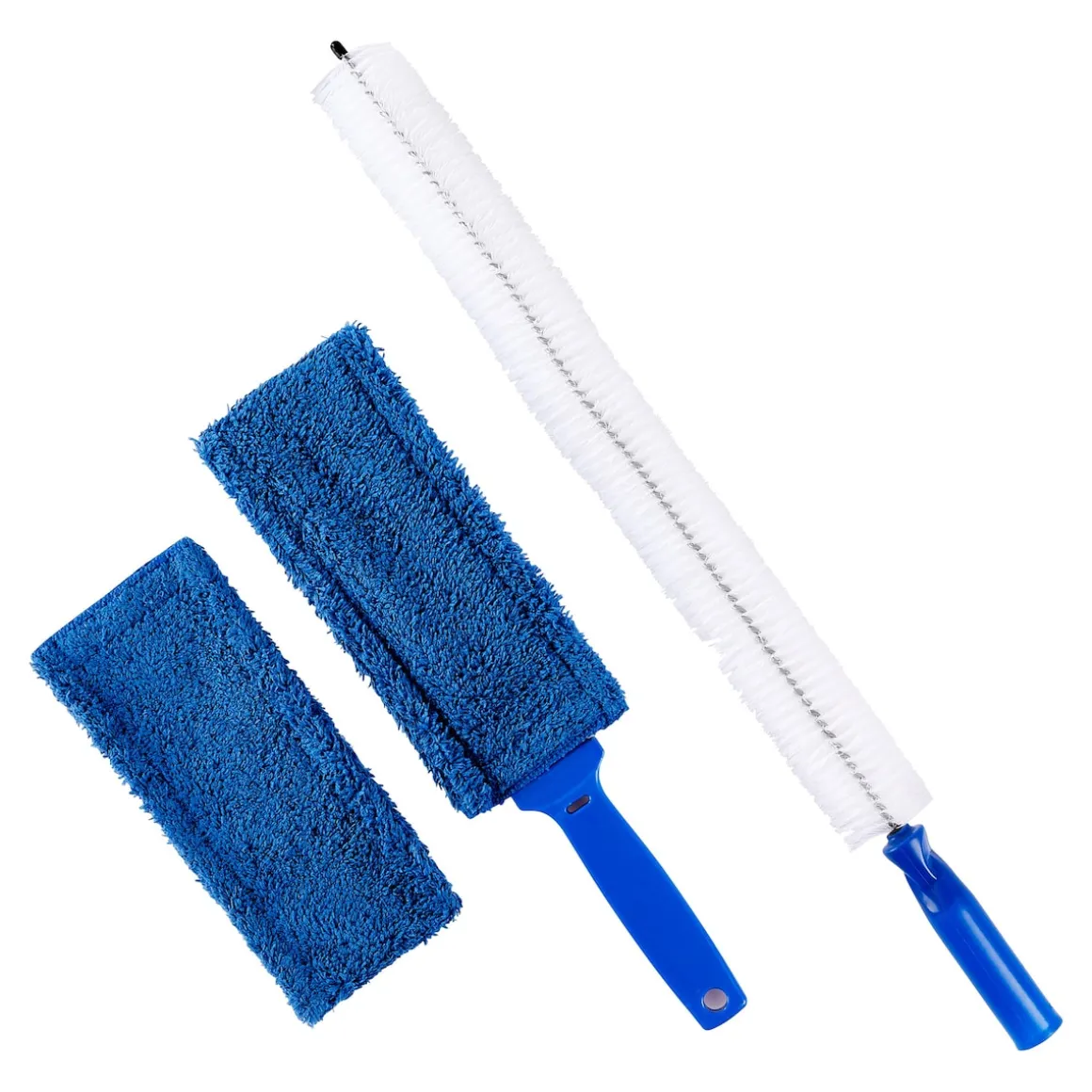 Abmessungen: Weiße Bürste: (L) 60 cm; 1 Wischer: (L) 37,5 cm; Stabtücher: (LxB) 23,5×11 cm