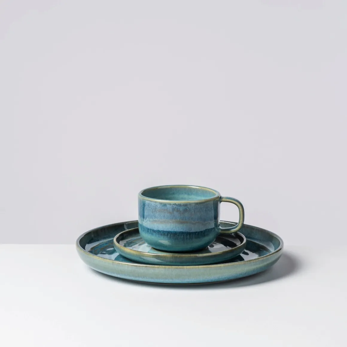 Wohl in jeder Alpenregion gibt es ihn: Den tiefen See, um den sich Legenden ranken. Der zum Baden meist zu kalt ist. Der Ruhe ausstrahlt und zum Verweilen einlädt. Die facettenreiche Kollektion Tiefer See mit ihren ineinanderfließenden Farbnuancen ist eine Hommage an diesen ganz besonderen Ort. An ihren Rändern spiegeln sich die umgebenden Berge auf einer sich kräuselnden Wasseroberfläche. Ihre beinahe dreidimensional erscheinende Mitte bringt die Kraft der Tiefe und Stille auf den Esstisch.