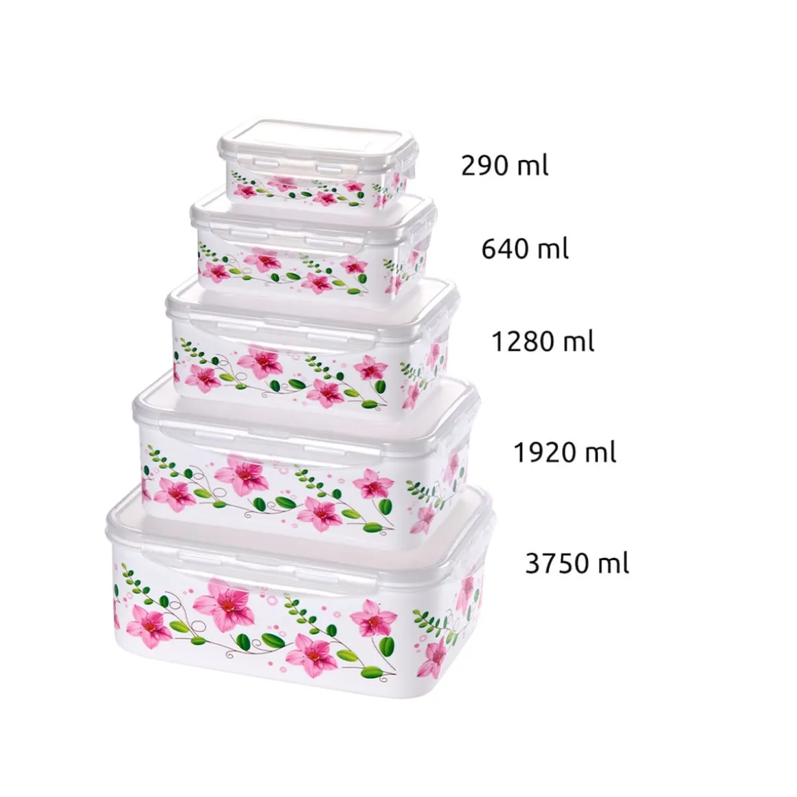 Fassungsvermögen Set: 290 ml, 640 ml, 1280 ml, 1920 ml, 3750 ml