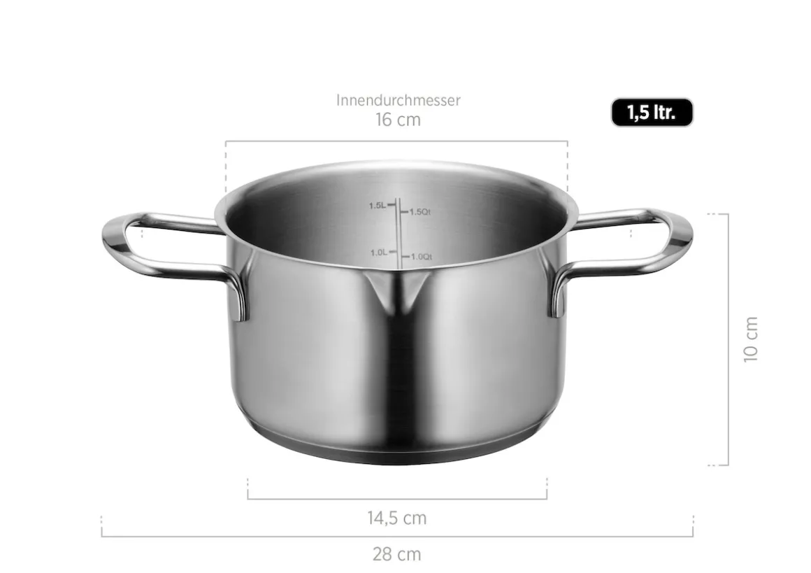 Kochen mit hochwertigem und vor allem gut durchdachtem Kochgeschirr erhöht den Spaßfaktor enorm. Die Kochtopf-Serie Sanvito lässt keine Wünsche offen, wenn es um clevere Kochlösungen auf dem Herd geht. Die Edelstahltöpfe haben einen praktischen Ausgießer und eine Literskala. Garflüssigkeit abmessen vor Kochbeginn und abseihen nach Ende des Kochvorgangs sind damit ganz ohne weitere Hilfsmittel möglich. Durch den robusten Glasdeckel können Sie zu jeder Zeit beobachten, was im Topfinnern passiert.