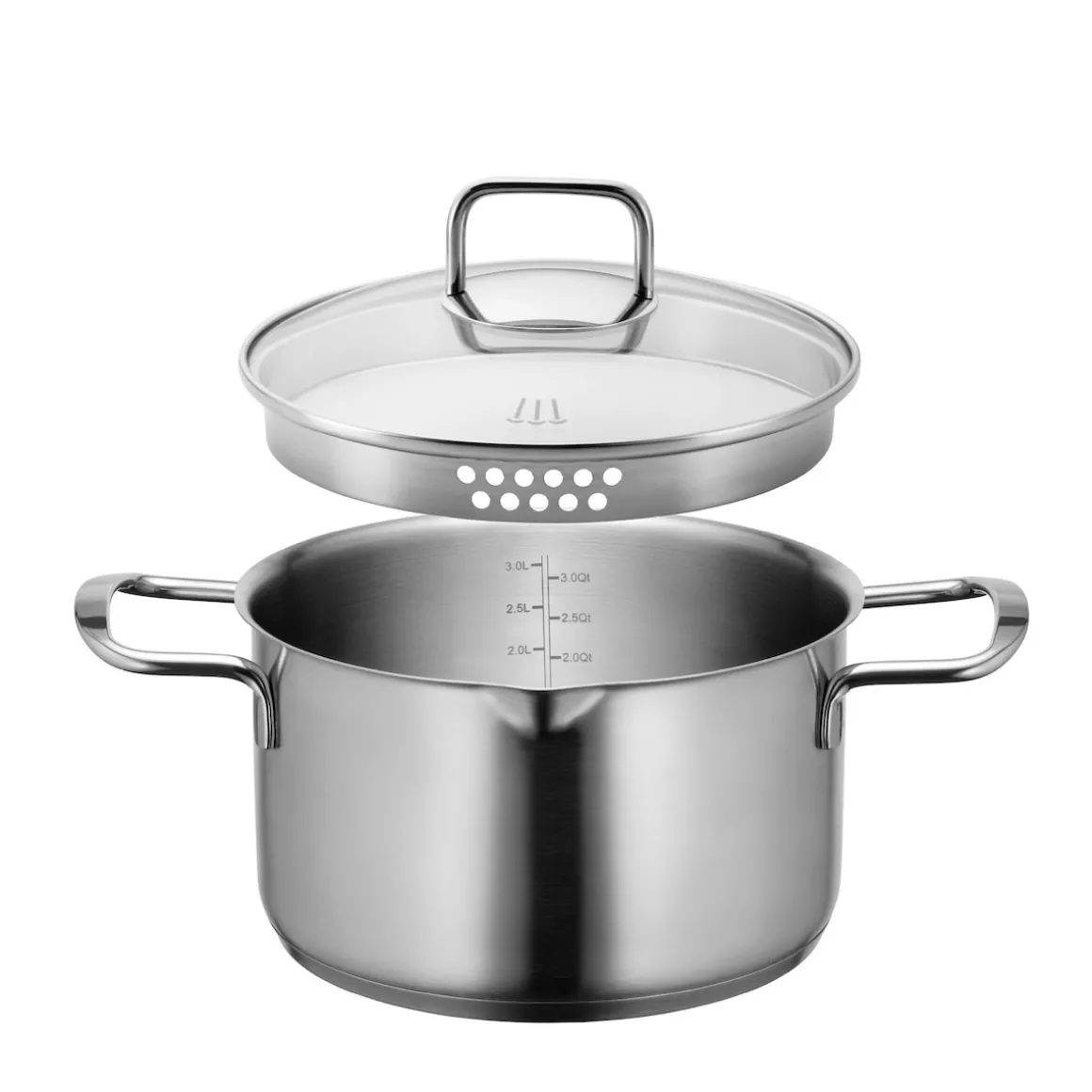 Kochen mit hochwertigem und vor allem gut durchdachtem Kochgeschirr erhöht den Spaßfaktor enorm. Die Kochtopf-Serie Sanvito lässt keine Wünsche offen, wenn es um clevere Kochlösungen auf dem Herd geht. Die Edelstahltöpfe haben einen praktischen Ausgießer und eine Literskala. Garflüssigkeit abmessen vor Kochbeginn und abseihen nach Ende des Kochvorgangs sind damit ganz ohne weitere Hilfsmittel möglich. Durch den robusten Glasdeckel können Sie zu jeder Zeit beobachten, was im Topfinnern passiert.