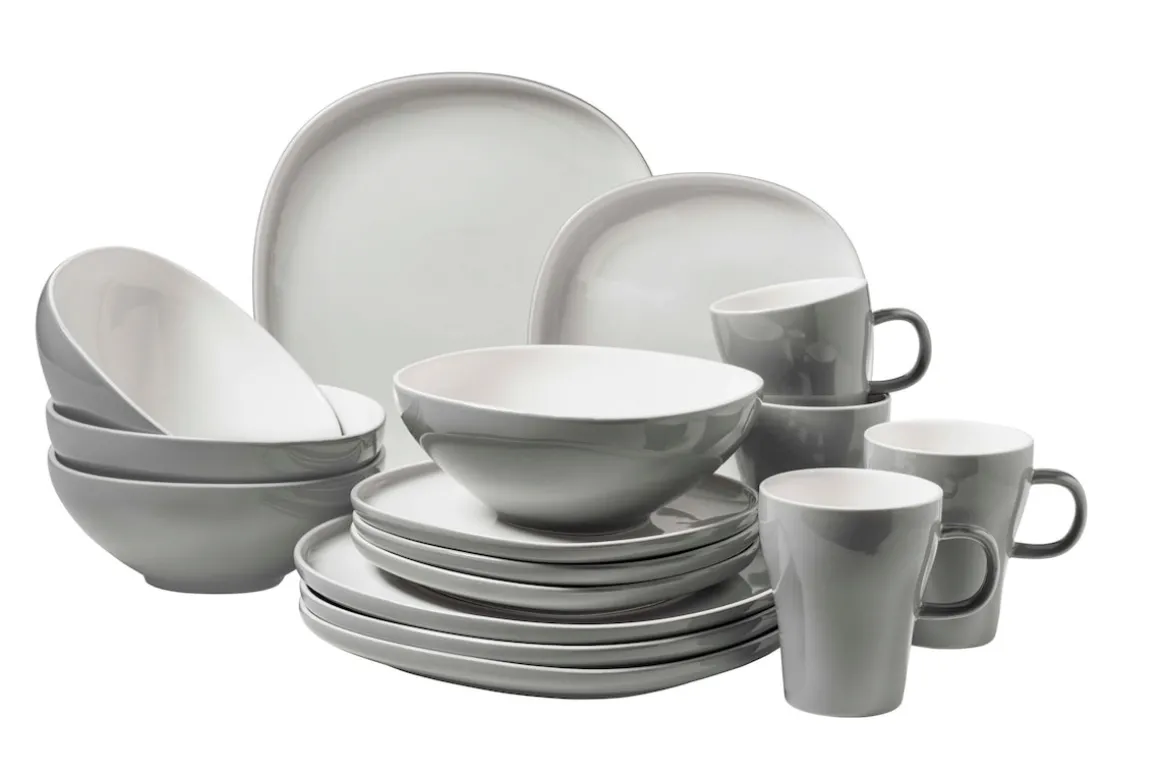 Mit ihrer abgerundeten quadratischen Formgebung präsentiert sich die Keramikgeschirr Kollektion „Isora“ der österreichischen Traditionsmarke MÄSER modern und zeitlos zugleich. Ein pfiffiges Detail der Farbvariante in glänzendem Schwarz ist die unglasierte Umrahmung der Teller und Servierplatten, welche die Spülmaschineneignung selbstverständlich nicht beeinträchtigen. Die Farbvariante in Grau-Weiß hingegen überzeugt mit ihrem sympathischen Kontrast zwischen weißer Innen- und grauer Außenglasur. Gefertigt aus hochwertigem und dickwandigem Steinzeug (nicht zu verwechseln mit dem deutlich poröseren Steingut) wird Ihnen dieses Set aus der Kollektion „Isora“ lange Freude bereiten. Alle Teile der Tafelgeschirr-Serie „Isora“ sind mikrowellen- und geschirrspülergeeignet und sind somit äußerst pflegeleicht. Dieses Set wird in einer vielfach auf Bruchsicherheit getesteten Transportverpackung aus ressourcenschonenden Materialien versendet. Bitte beachten Sie: Um eine objektive Vergleichbarkeit zu gewährleisten, gehen unsere Füllmengenangaben von einer randvollen Befüllung aus.