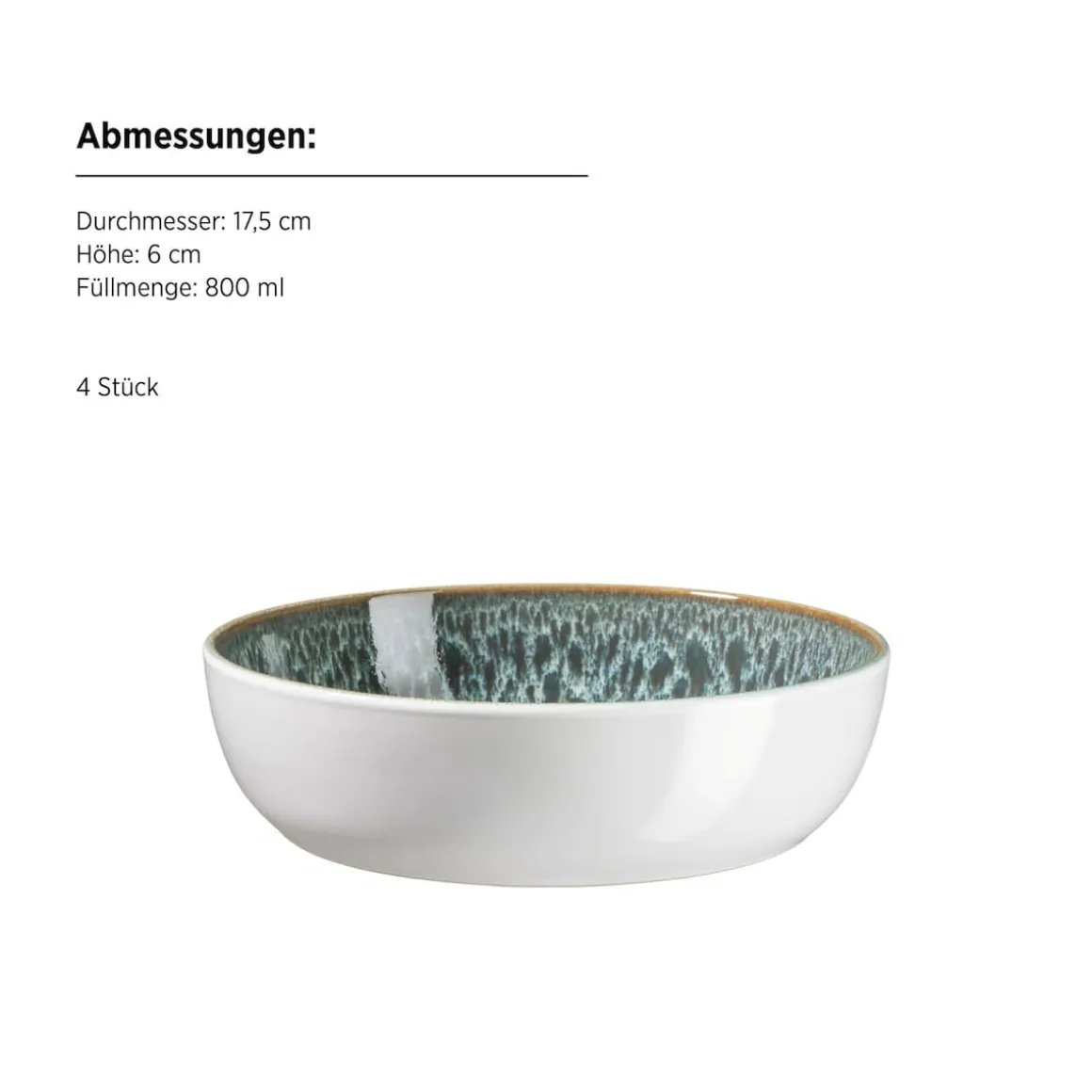 Das MÄSER Kombiservice der Serie Malea in Beige / Blau / Grün mit dunklen Sprenkeln bringt skandinavische Leichtigkeit auf den Tisch. Dank der einzigartigen Reaktivglasur ist jedes Teil ein Unikat mit lebendigem Farbspiel. Die Teller, Schüsseln und Becher sind ideal für alle Mahlzeiten des Tages und bieten durch ihre Form und Farbgebung eine moderne Vintage-Optik. Praktisch im Alltag durch Spülmaschinen- und Mikrowellentauglichkeit – ein echtes Highlight für Ihr Zuhause.
