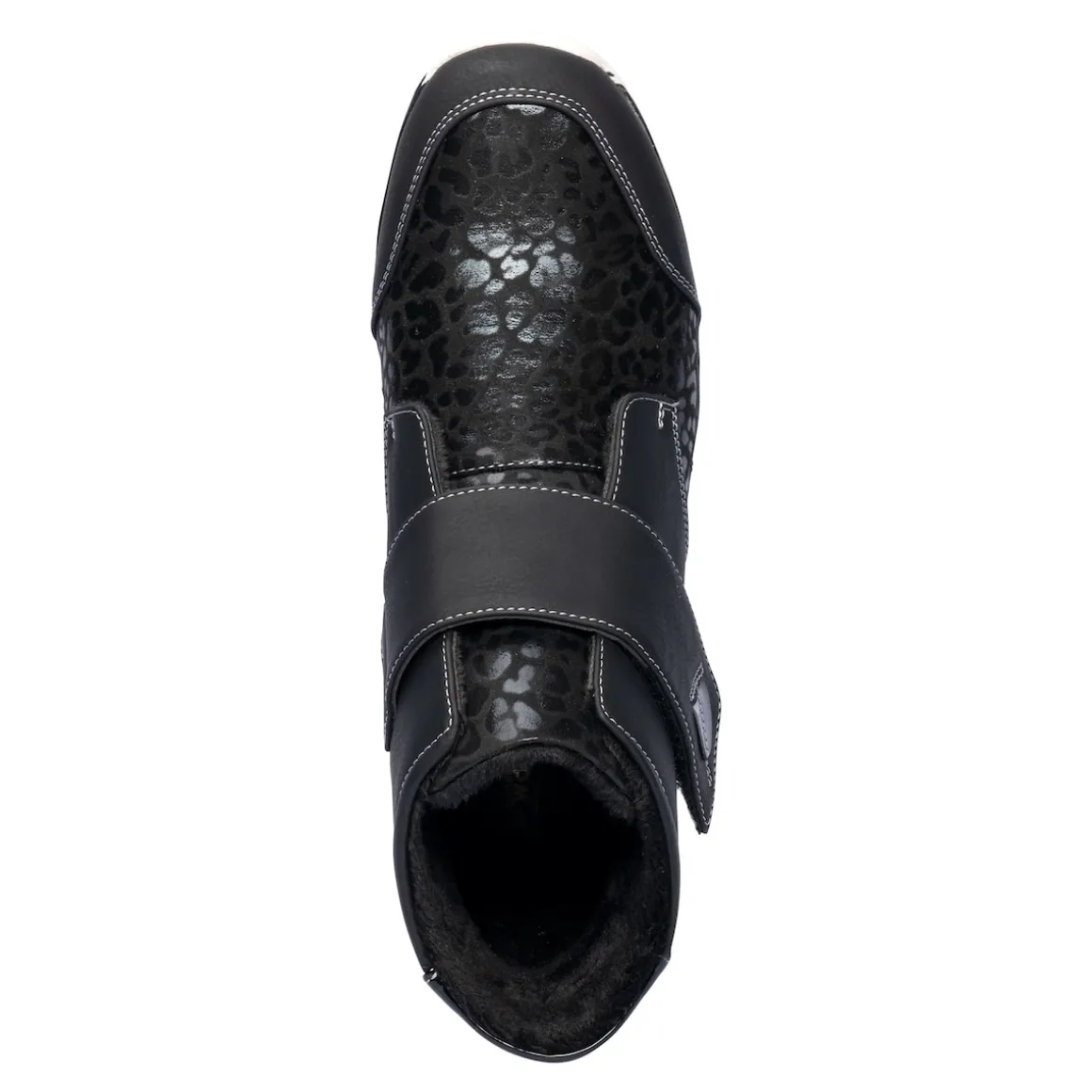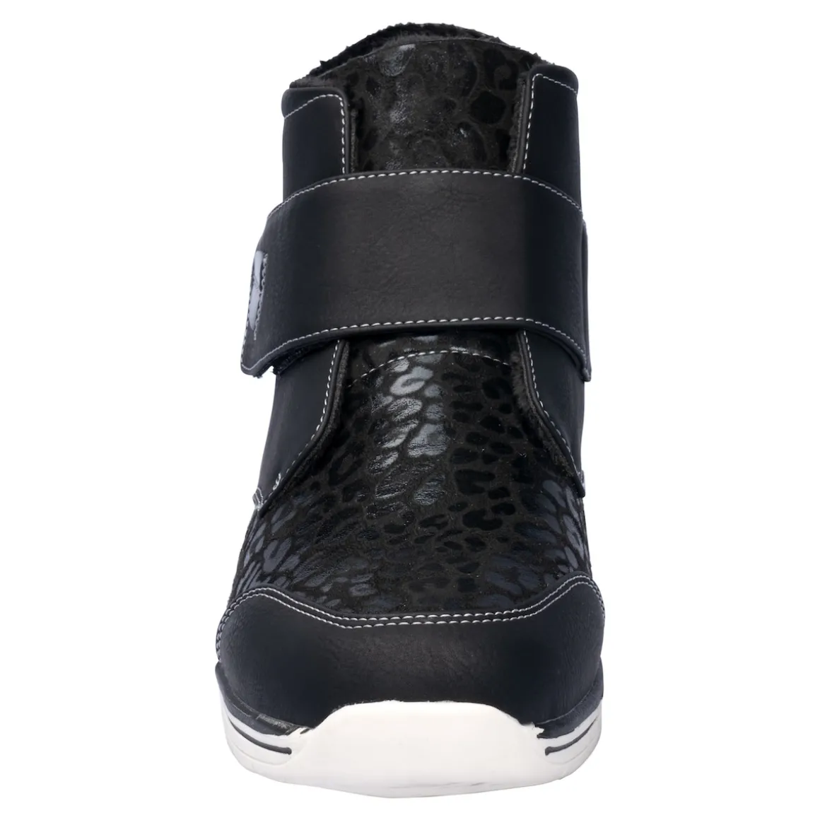 Ganz schön wild! Diese sportlich-bequeme Stiefelette in Leder-Optik mit glänzendem Leomuster gehört in dieser Saison garantiert zu Ihren Favoriten. Dank Klettverschluss lässt sie sich weit öffnen und ermöglicht Ihnen einen leichten Ein- und Ausstieg. Auch für stärkere Waden geeignet. Mit weicher Soft-Touch-Sohle, rutschhemmender Laufsohle.