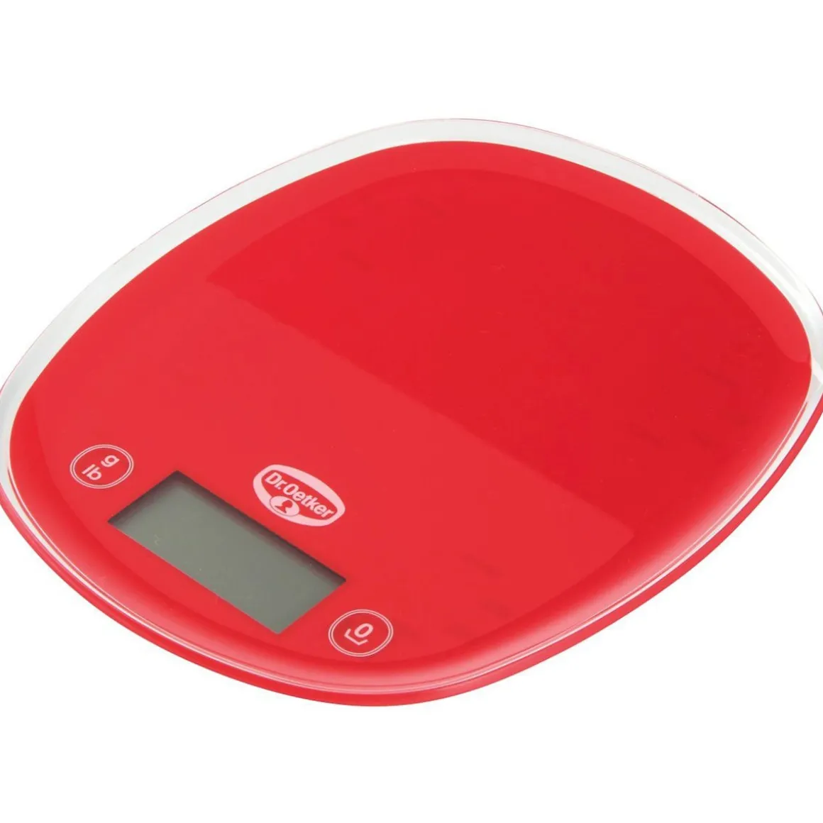 Die digitale Backwaage aus Kunststoff von Dr. Oetker wiegt beim Backen bis zu 5 kg Zutaten in präzisen 1 g-Schritten. Sie besitzt eine Zuwiegefunktion, komfortable Sensortaste, sowie ein gut lesbares Display.