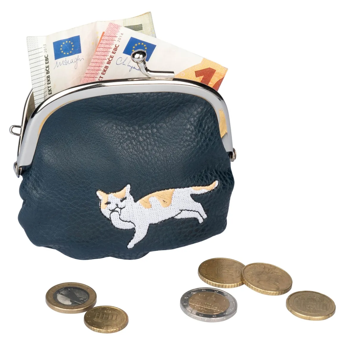 In dieser Klippbörse mit niedlicher Kätzchen-Stickerei ist ihr Bargeld dank Klippverschluss stets sicher aufbewahrt. Der Reißverschluss innen sorgt für zusätzlichen Stauraum.
