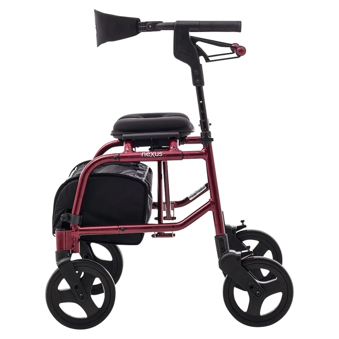 Leichtgewicht-Rollator NeXus mit Rückengurt und Tasche, faltbar rot