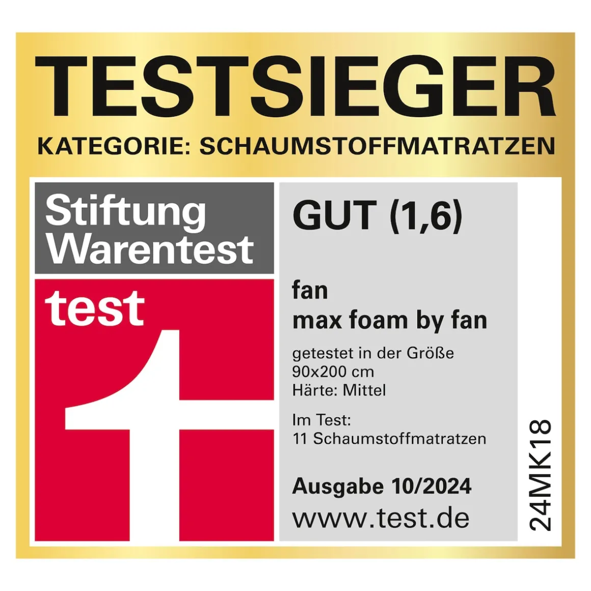 Wer morgens mit Rückenschmerzen aufwacht oder nachts ständig die Schlafposition wechseln muss, weiß: Eine gute Matratze macht den Unterschied. Die max foam Matratze passt sich flexibel an – ganz gleich, ob Sie auf dem Rücken, der Seite oder dem Bauch schlafen. Der punktelastische Hybridschaum sorgt für angenehme Druckentlastung, die viscoelastische Schicht für spürbare Anpassung – auch bei mehr Gewicht. Im Inneren stützt ein 5-Zonen-Kern gezielt dort, wo Ihr Körper es braucht. Einfaches Handling, ein Umdrehen von Ober- auf Unterseite ist nicht nötig sowie praktisch im Alltag: Der Bezug ist teilbar, leicht abnehmbar und bei 60 °C waschbar – ideal für alle, die auf Hygiene achten.