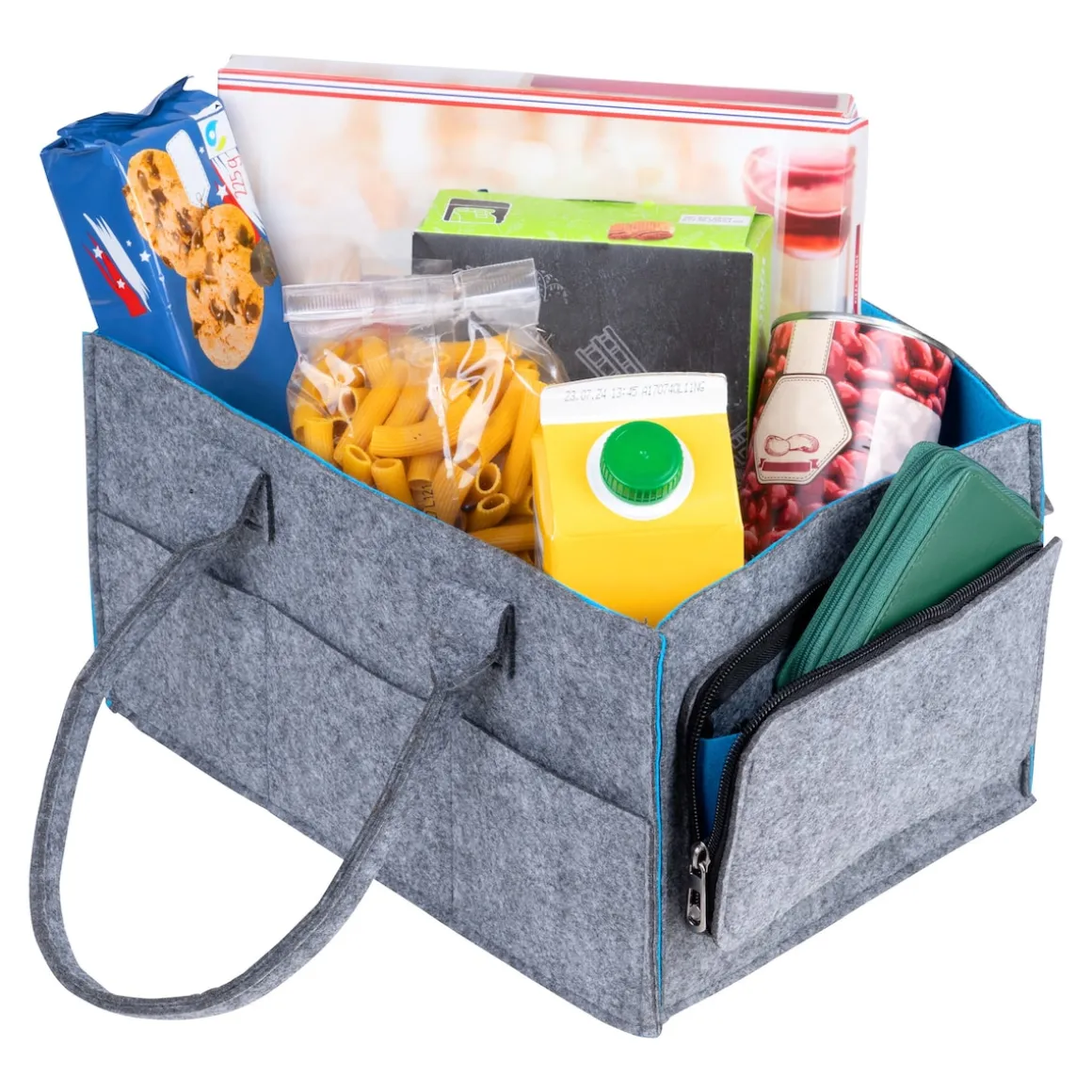 Ordnen, Lagern, Transportieren: Dafür ist diese Multi-Aufbewahrungstasche aus Filz bestens geeignet. Die verschiedenen Fächer bewahren Kosmetikartikel, Haushaltsutensilien, Spielsachen u.v.m. ordentlich für Sie auf. Auch praktisch für Einkäufe.