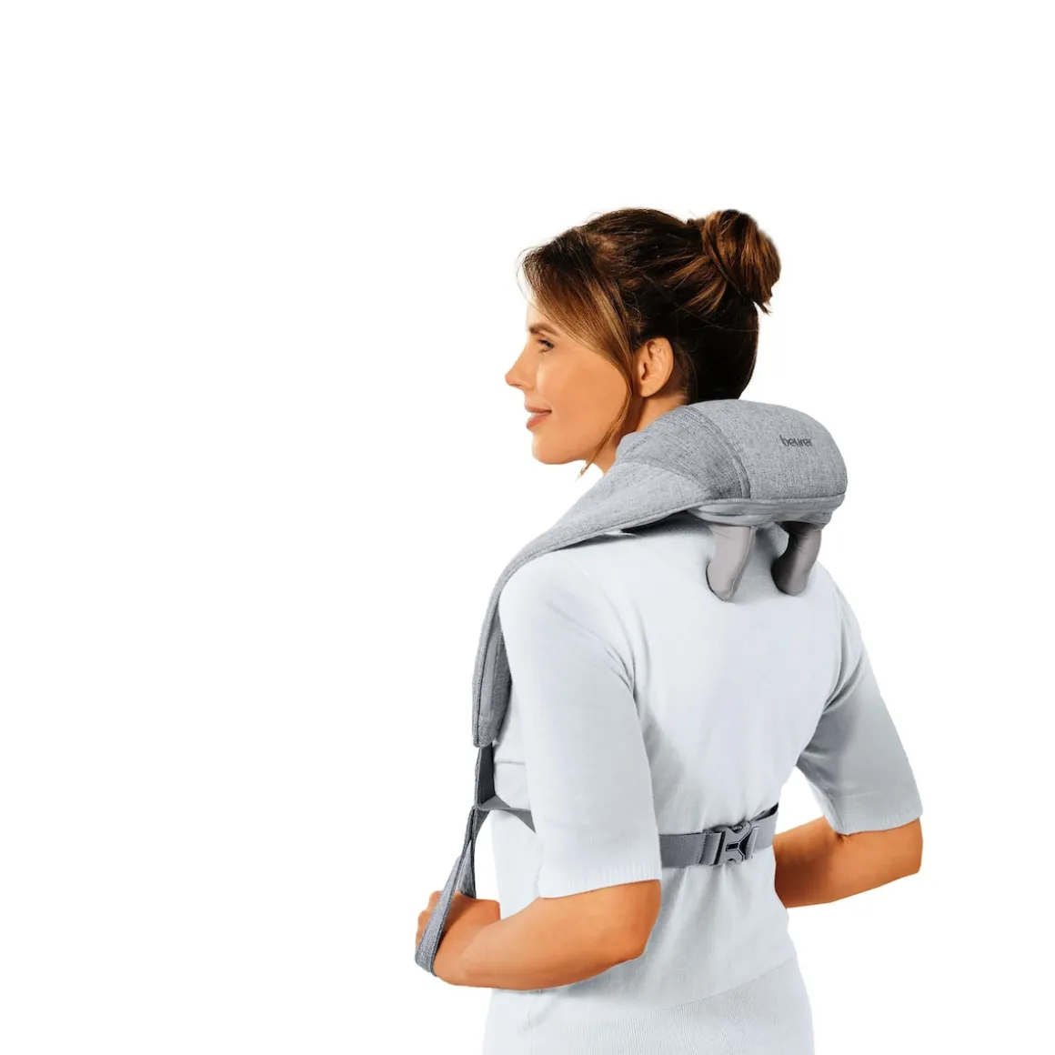 Reales Massageerlebnis dank handsimulierender Massageköpfe. Praktisch: das Rucksacksystem sorgt für freie Hände. Ergonomische Passform am Nacken für mehr Komfort und Entspannung. Tiefenwirksame Massage mit 4 Massageköpfen und 2 Massagefingern. Zwei Geschwindigkeitsstufen. Zuschaltbare Wärmefunktion. Leistungsstarker Lithium-Ionen-Akku mit automatischer Abschaltfunktion. Bezug abnehm- und waschbar bei 30°C.