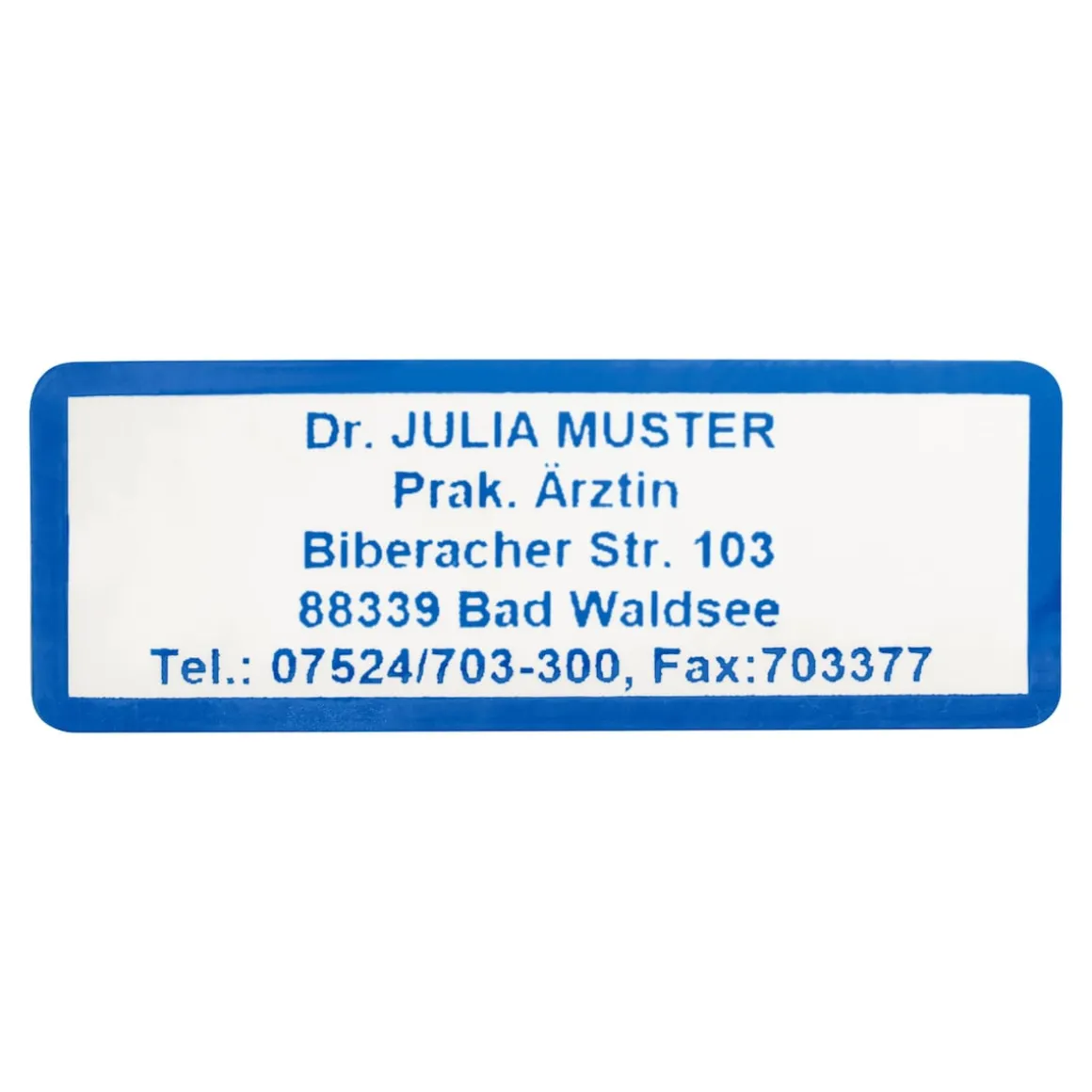 Bei diesen Namensaufklebern haben Sie die Möglichkeit, fünf Zeilen mit bis zu 30 Zeichen pro Zeile drucken zu lassen. Geben Sie hierzu bei der Bestellung einfach Ihren persönlichen Text in die entsprechenden Felder ein. Es stehen zwei Packungsgrößen zur Auswahl: 300 Stück und 1.000 Stück. Außerdem können Sie zwischen verschiedenen Farben (rot, blau, schwarz, silber, gold) wählen.