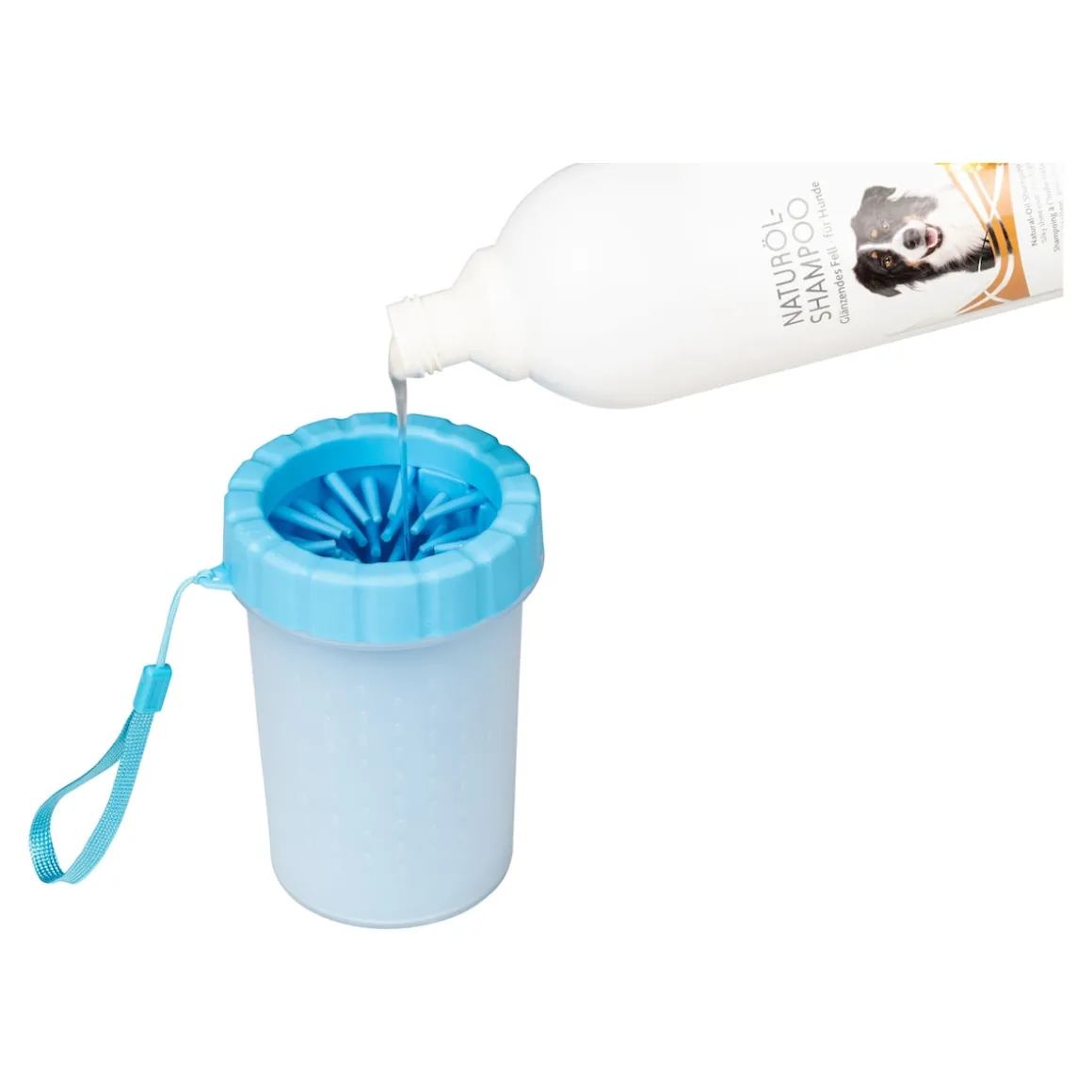 - Hundeshampoo oder Wasser einfüllen