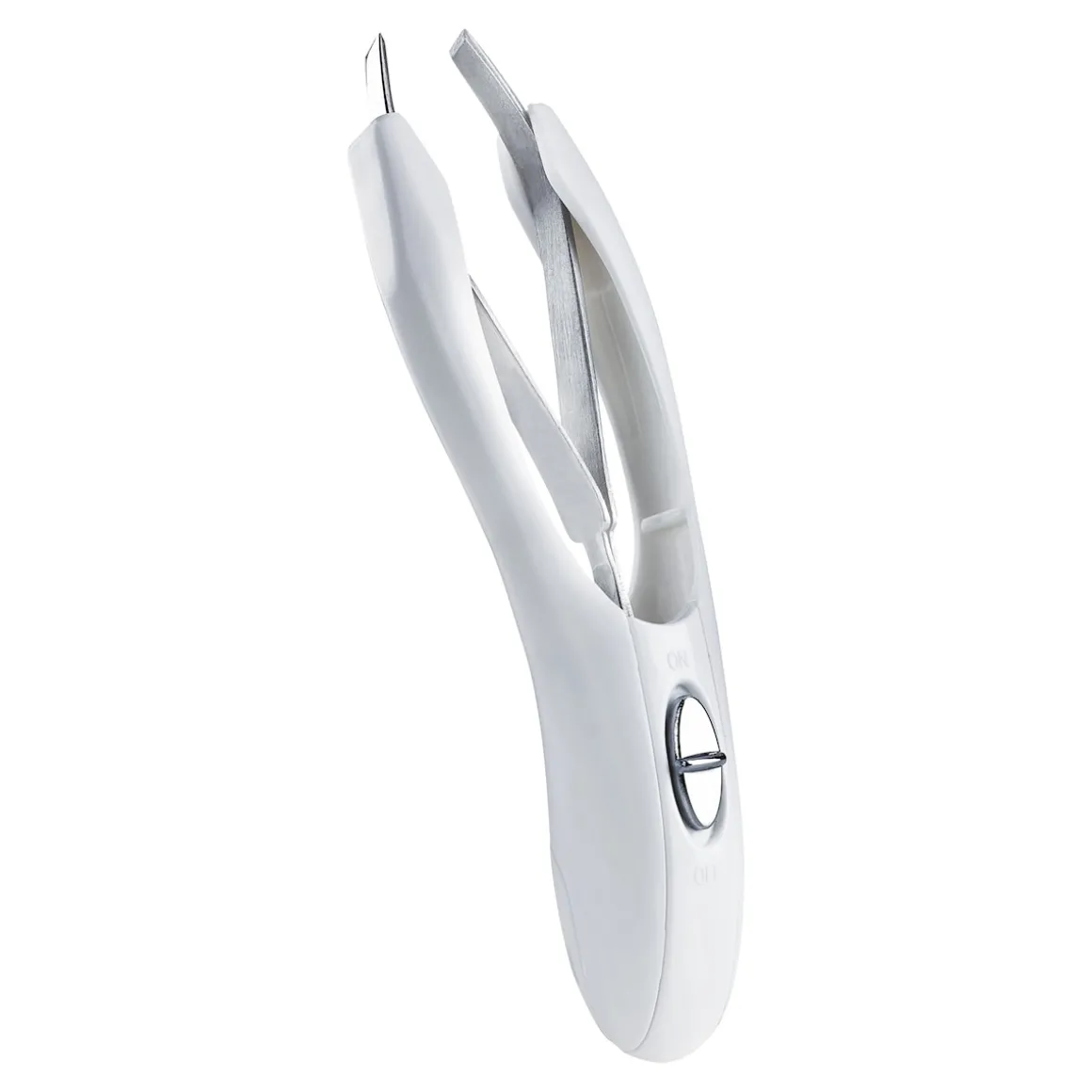 Die exakt geschliffene Spitze ermöglicht punktgenaues Greifen. Dank der automatischen Mechanik zieht sich die Pinzette beim Zusammendrücken des Griffes zurück und zupft so weniger schmerzhaft. Auch für Personen mit eingeschränkter Motorik geeignet. Mit super hellem LED-Licht.