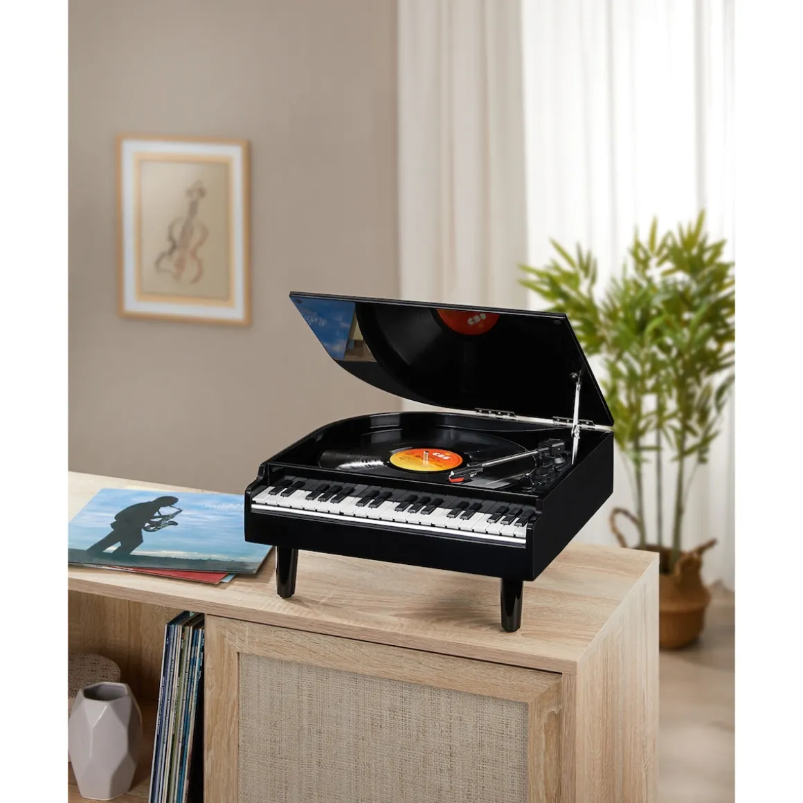Ohren gespitzt: Dieser Plattenspieler im edlen Piano-Design bekommt von Musikliebhabern die Bestnote! Die Tasten lassen sich tatsächlich klangvoll anschlagen. Das Gerät besitzt 2 Stereo-Lautsprecher, spielt Schallplatten in 3 Geschwindigkeiten ab und gibt über Bluetooth Ihre Musik wieder. Passend für Schallplattenformate: Ø: 7“, 10“ und 12“.