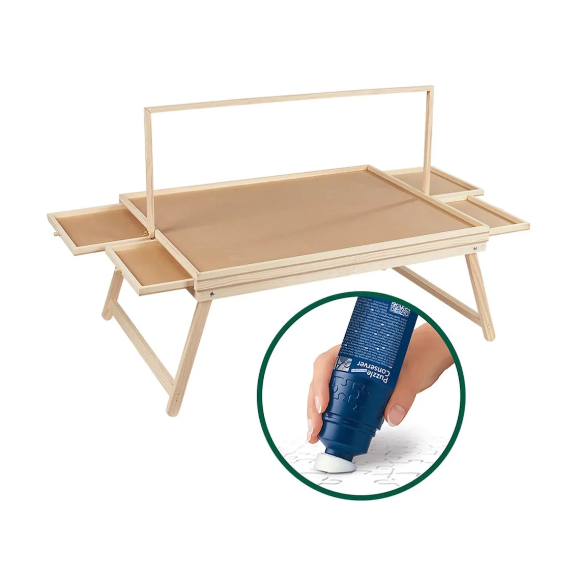 Besonders praktisch: Sie können den Tisch mitsamt angefangenem Puzzle problemlos an einen anderen Ort tragen, ohne Teile wegräumen oder den Fortschritt verlieren zu müssen. So bleibt alles an seinem Platz und Sie können jederzeit flexibel weiterpuzzeln.