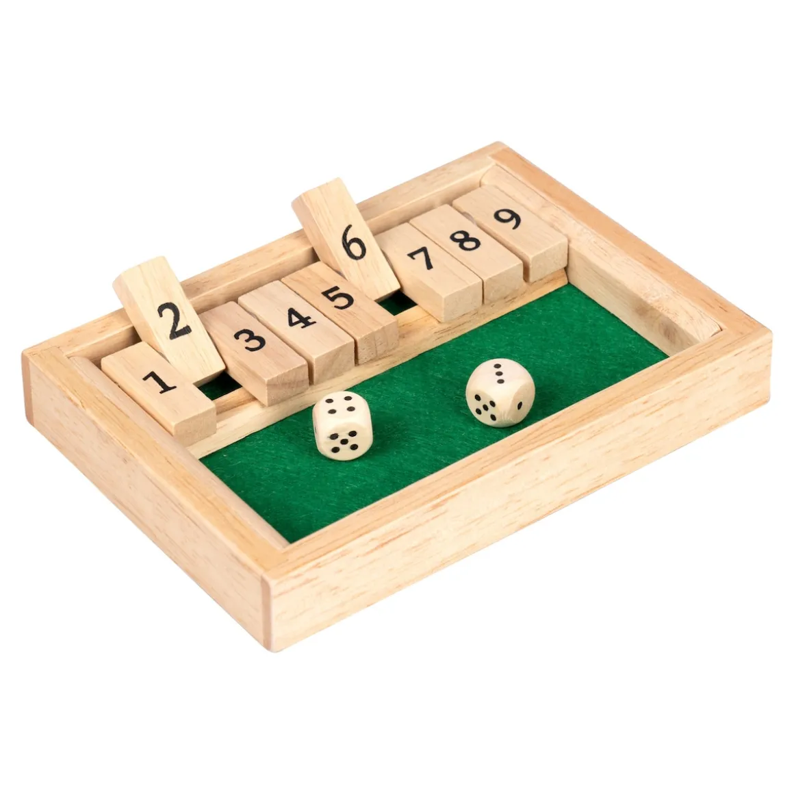 Klein im Format, groß im Spielspaß: Durch clevere Kombinationen werden passende Klappen umgelegt – einzeln oder in Summe der gewürfelten Augen. Der beliebte Klassiker fördert spielerisch das Kopfrechnen. Geeignet für 2 Personen. Inkl. 2 Würfeln.