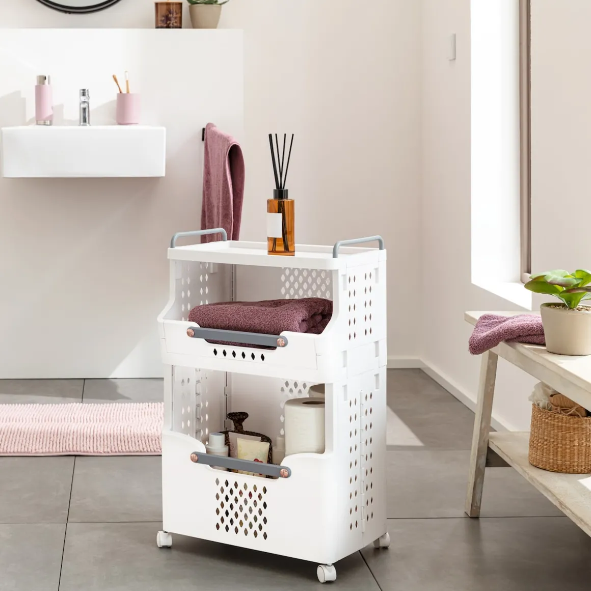Ob im Bad, in der Küche oder im Abstellraum – genug Platz hat man doch nie. Dieser Rollwagen schafft Abhilfe, indem er all Ihre Utensilien ordentlich verstaut und jederzeit griffbereit hält. 2 Griffe erleichtern das Schieben.
