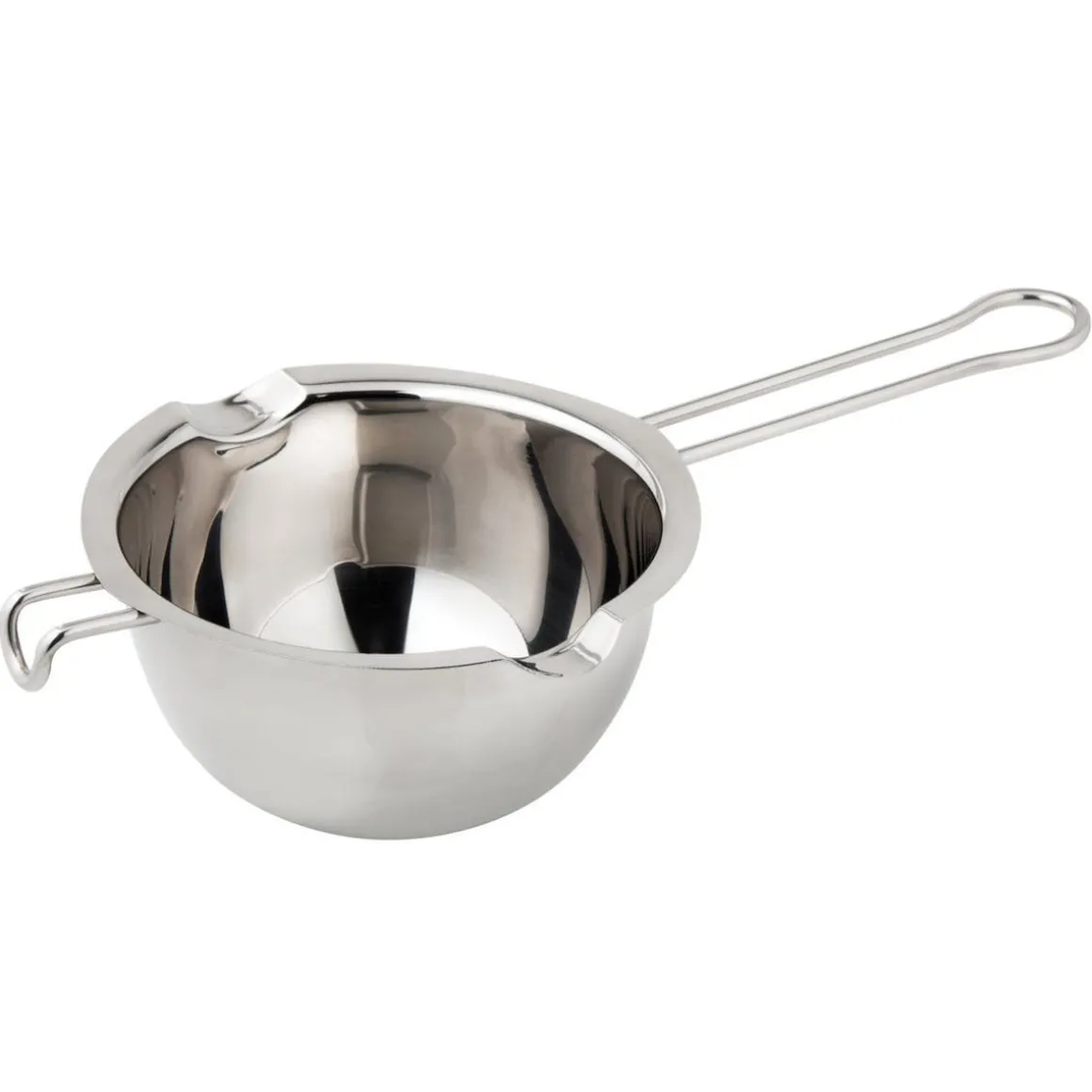 Der Dr. Oetker Schmelztopf aus hochwertigem Edelstahl zum Schmelzen von Schokolade und Kuvertüre im Wasserbad. Ein extra langer Bügelgriff und zwei Ausgießnasen sorgen für ein gleichmäßiges Ausgießen, der flacher Boden für einen sicheren Stand. Zudem ist der spülmaschinengeeignet.